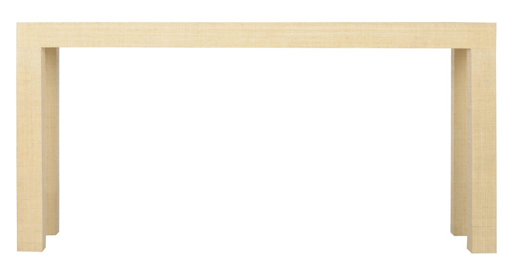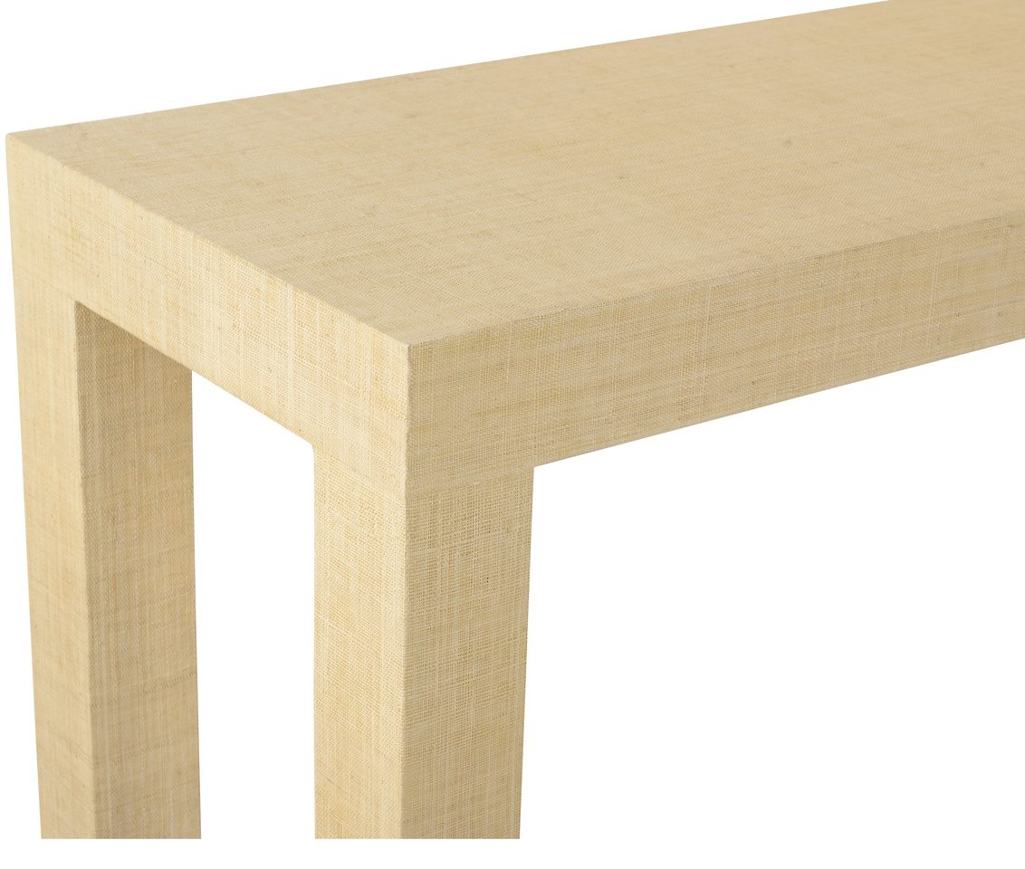 Product Description: Chelsea House 385239 Sanibel Console Natural - Classic lines make this linen raffia wrapped console easy to use in both modern and traditional interiors. It's a fresh version of the classic Parson's table that will never go out of style. Designed by Jamie Merida.