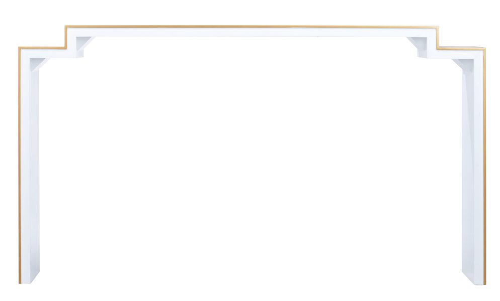 Product Description: Chelsea House 385271 Chatsworth Console Table White - The Chatsworth Console Table in white is inspired by our very popular Chatsworth Cocktail Table. It features white lacquer on wood with metallic gold detailing and stepdown design. By designer Elizabeth Wicker.