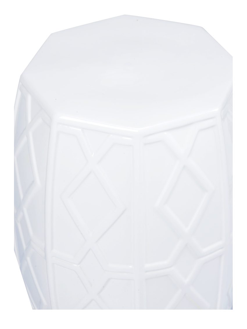 Product Description: Chelsea House 385333 Andreu Garden Stool White - Charming ceramic garden stool in gloss white with diagonal design. Perfect as a stool, extra seating or as a side table. Designed by Shayla Copas.
