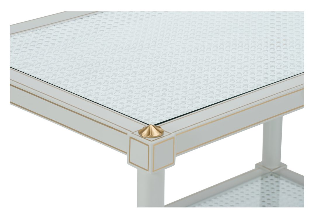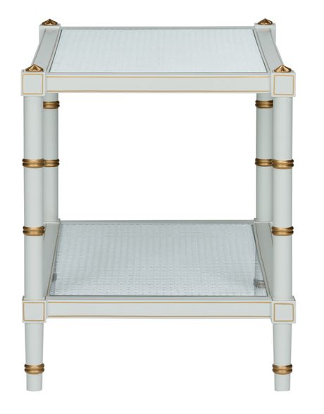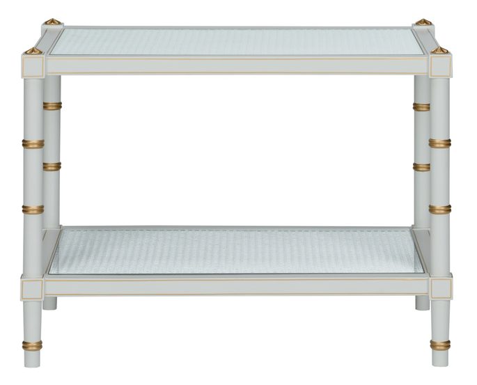 Product Description: Chelsea House 385712 Conner Cane Cocktail Table Gray - The Conner Cocktail Table in gray is adorned with gold hand-painted detailing around the edge of the bamboo-inspired legs and natural caned shelf. Perfect for any room that needs a pop of color. Designed by Bill Cain.