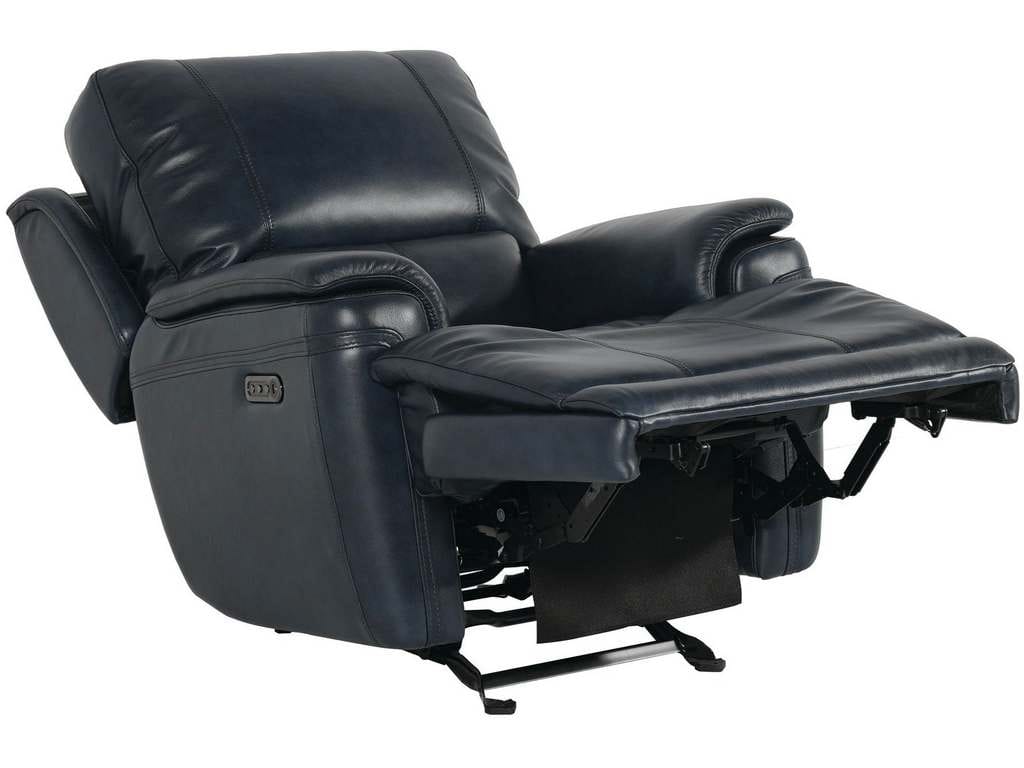Product Description: Club Level By Bassett 3749-P9N Burlington Power Glider Recliner in Navy Leather - Power Control Mechanism. Powered Headrests. Power adjustable lumbar support. USB Charging. Top Grain Leather. Zero gravity for stress free reclining. 400 lb. Rating. Available in leather and vinyl match on arms and back. Each end seat of the sofa reclines while the panel to adjust in the reclining positions.