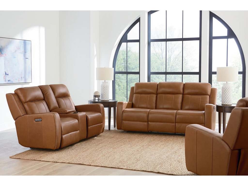 Club Level By Bassett 3753-P62W Norwood Power Motion Recliner in Tan Leather