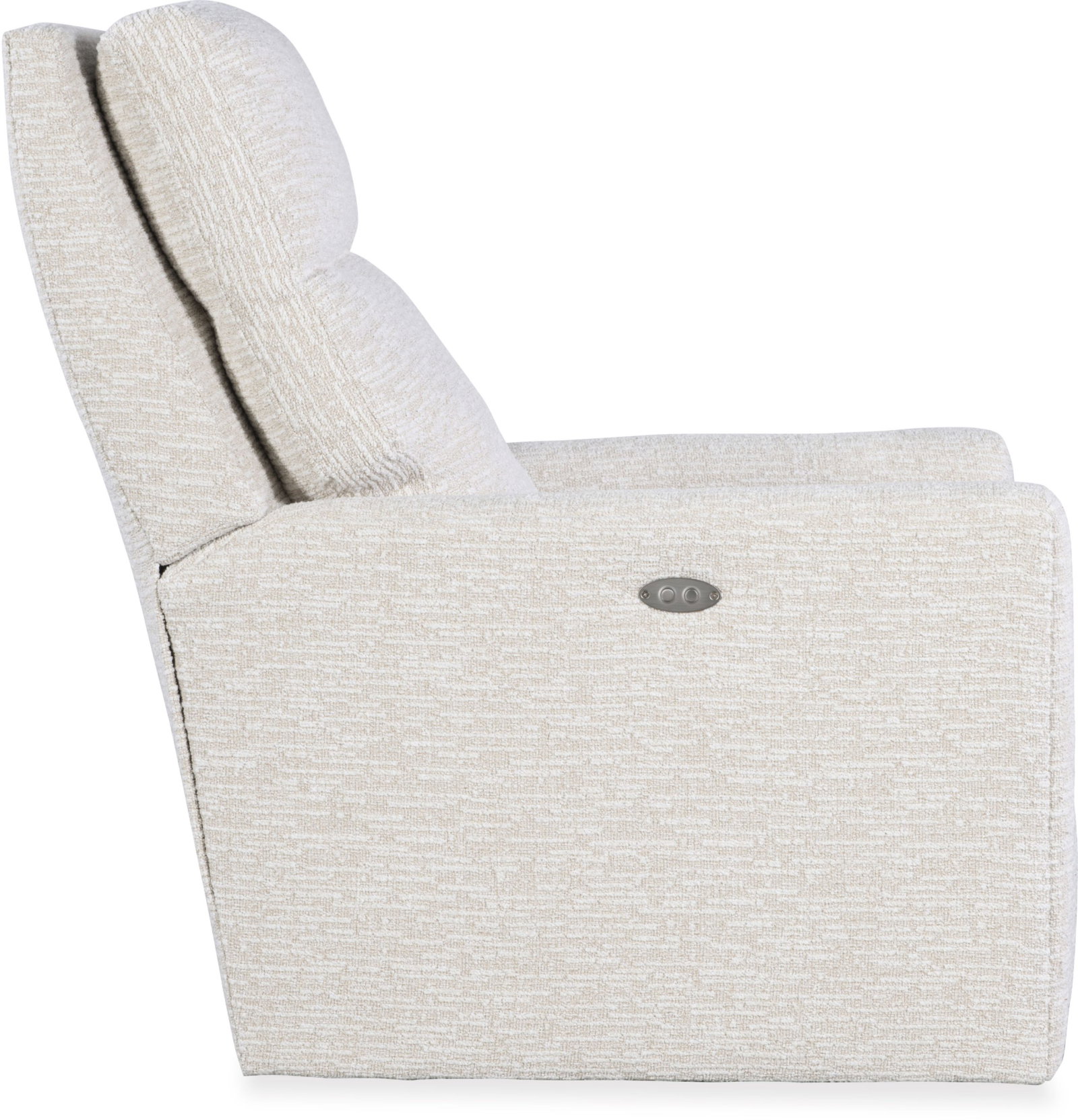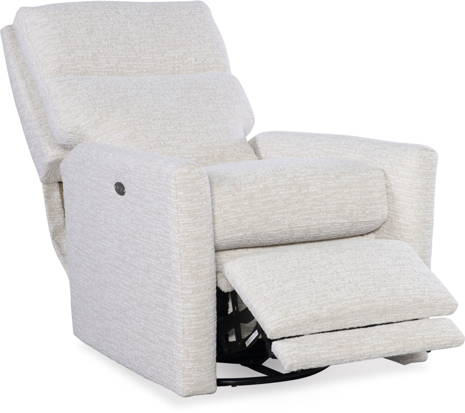 Product Description: CR Laine 1106-05SWPR Curtis Swivel Power Recliner - Fabric shown in Cayman Sand. Semi-Attached Box Border Back. French Seamed. Allow 18" distance from wall for reclining position. Fully Reclined Depth: 69D