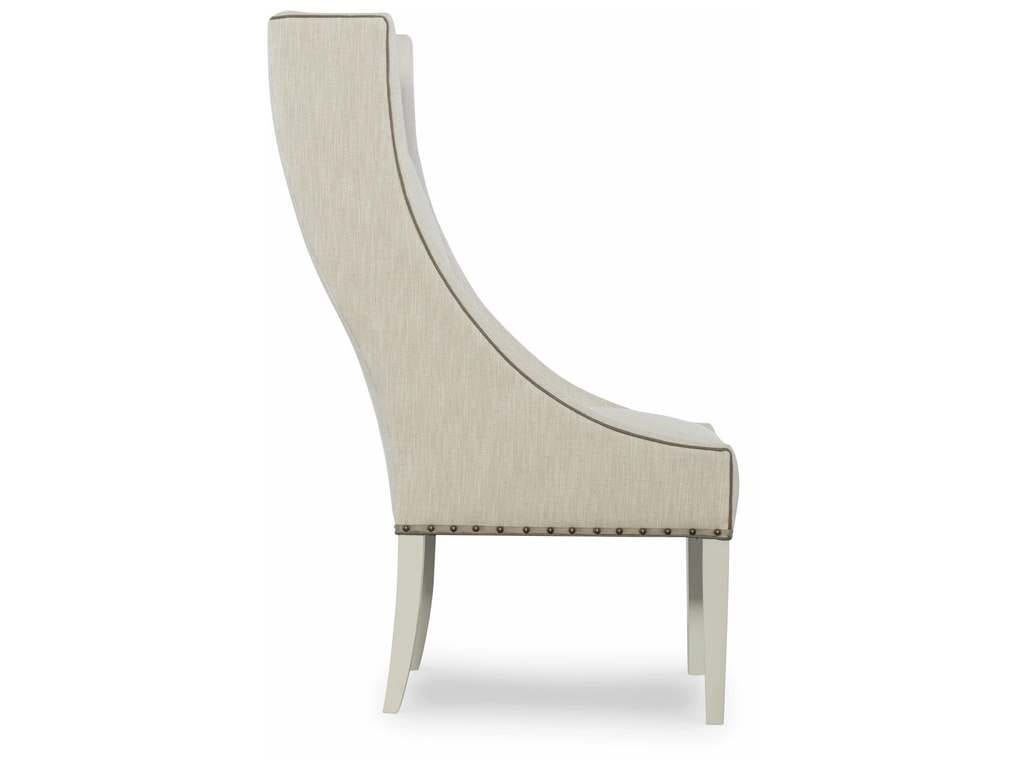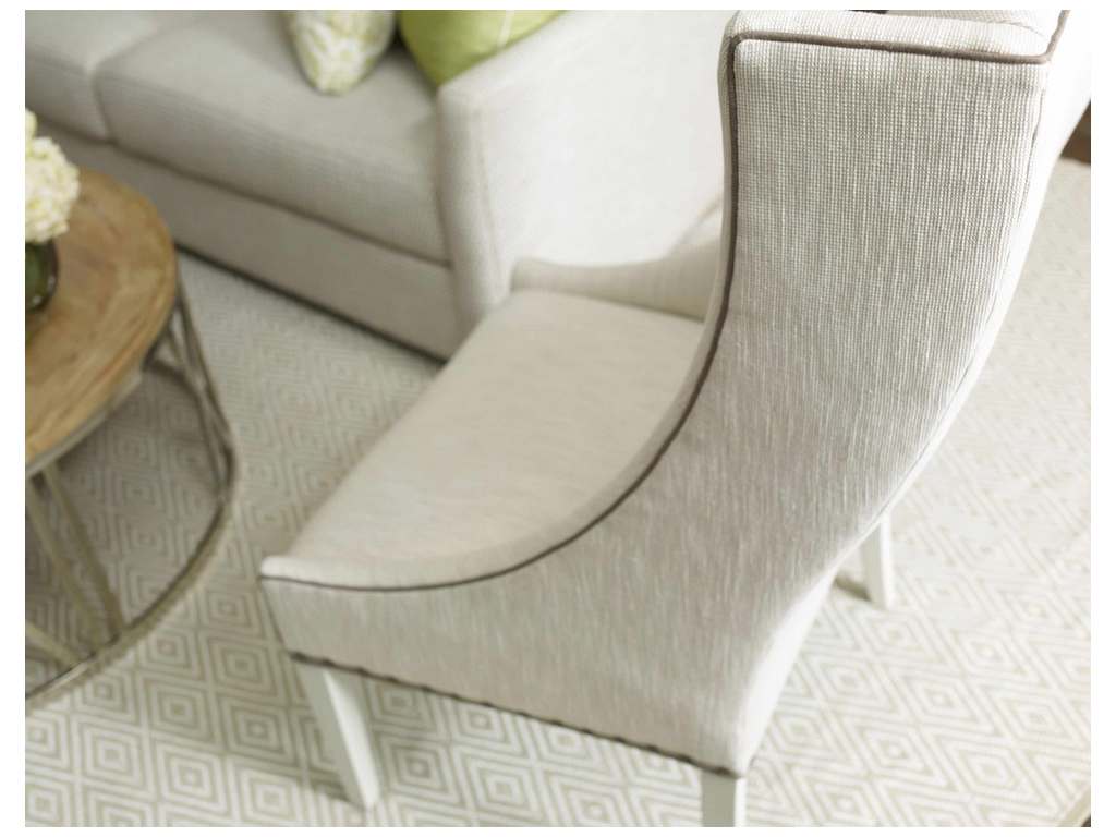 Product Description: CR Laine 1235 Chloe Chair - Shown with: Ocracoke Natural Fabric, Retired Contrast Welt, Nail Tape Smoke Trim, and Small Black Nickel Nail Trim.