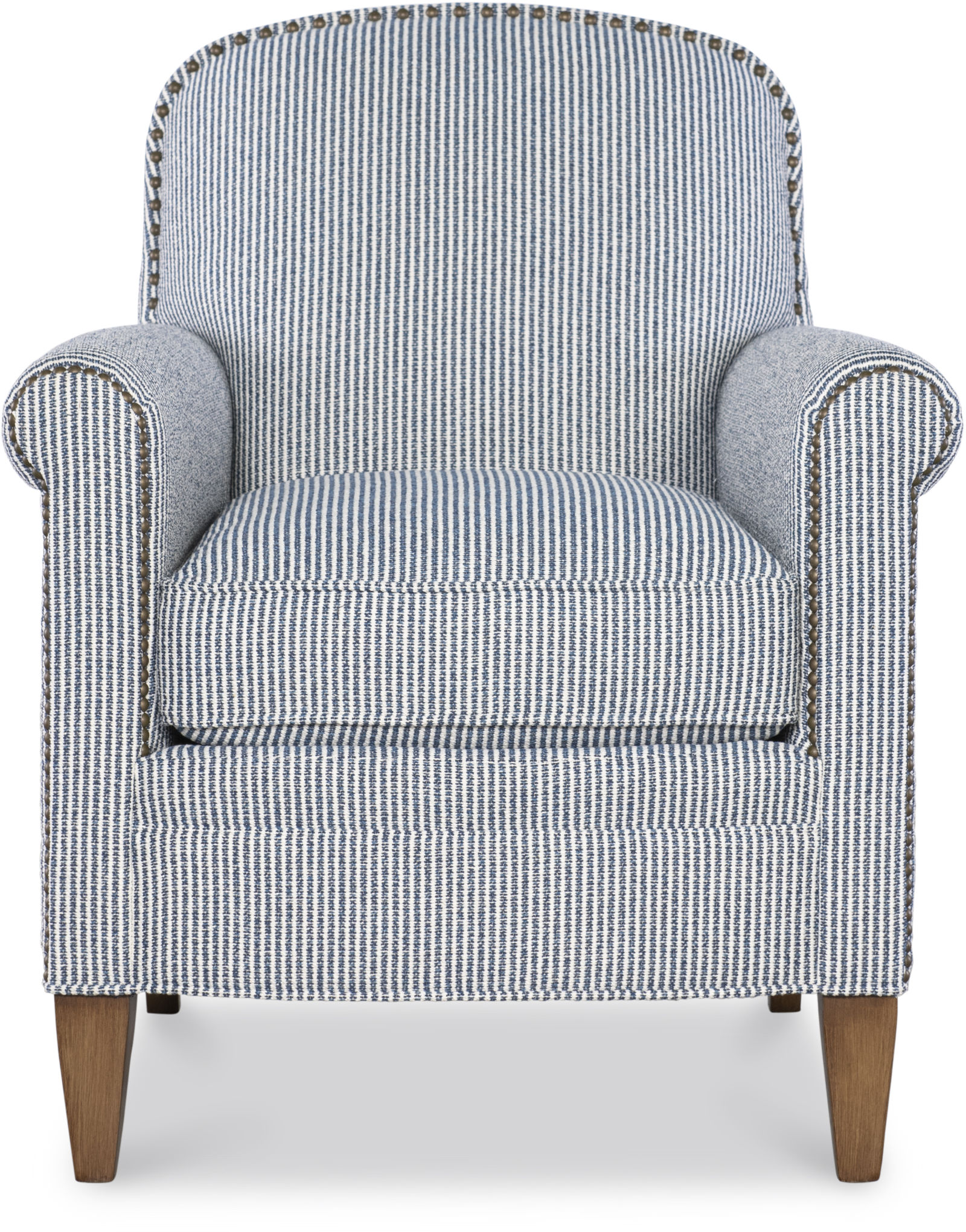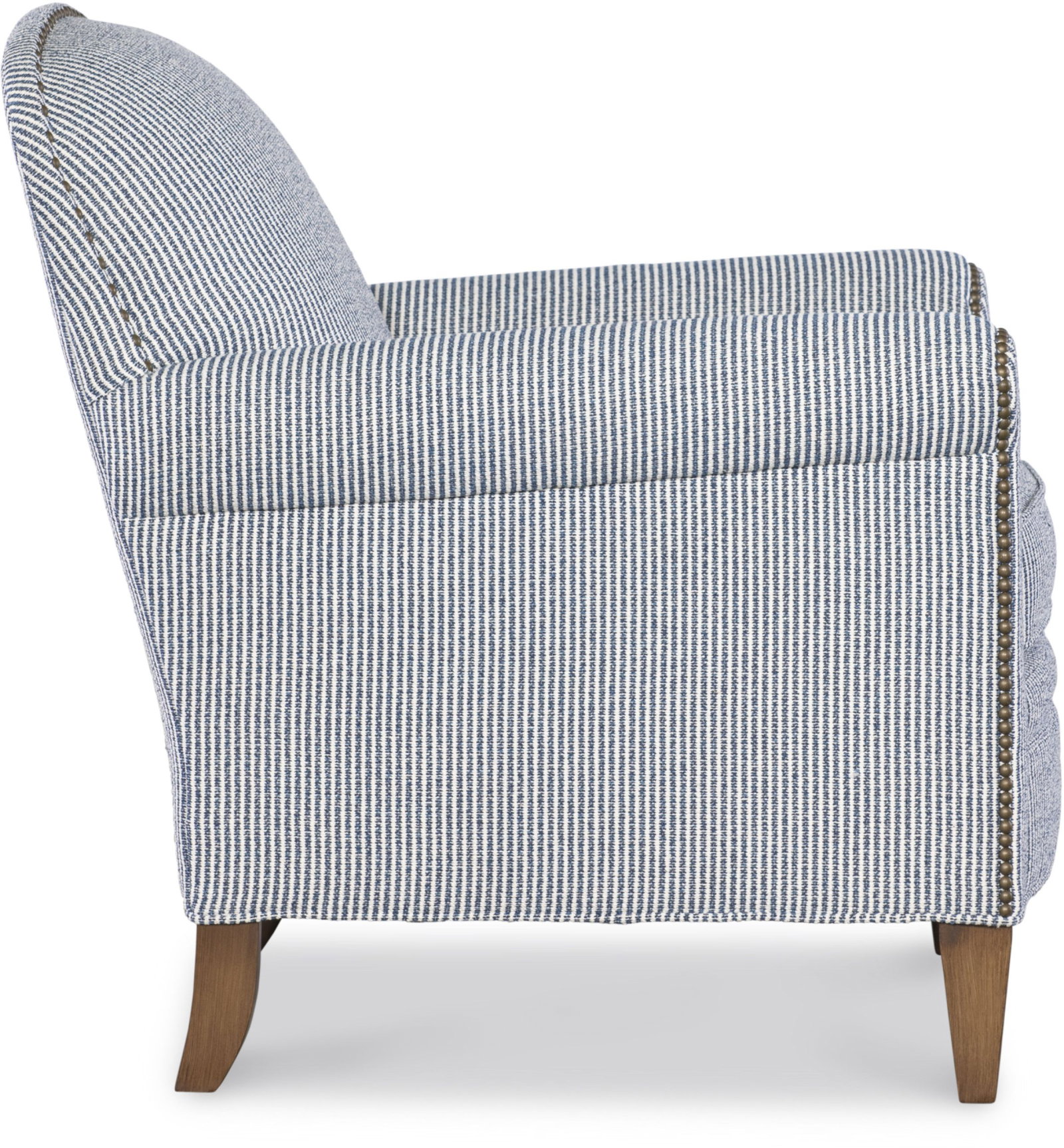 Product Description: CR Laine 1785-05 Gus Chair - Standard with small nail trim. Shown in Fabic Stanhope Indigo. Finish in Teddy Bear. Nail Trim in Small Antique Nail.