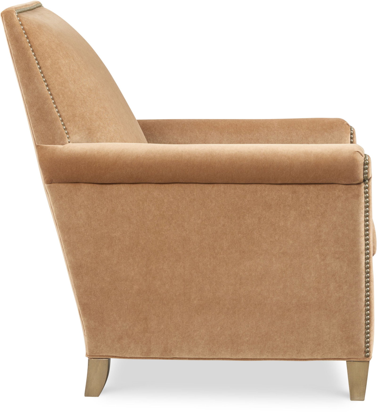 Product Description: CR Laine 1885-05 Josh Chair - Fabric shown in Banks Yam w/ finish in Sahara. French Seamed. Standard with small nail trim.