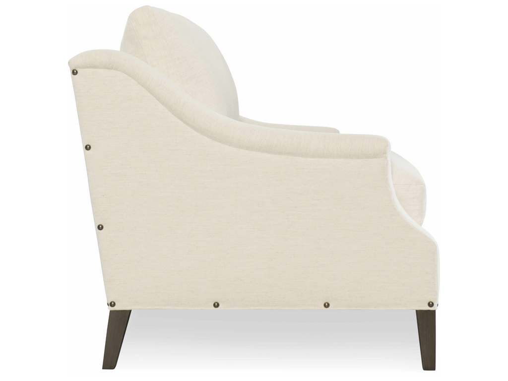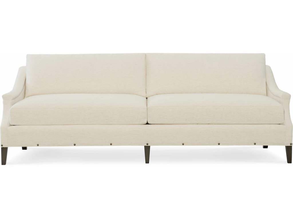 Product Description: CR Laine 216-21 Hannah Long Sofa - Box Border Back, French Seamed and Standard with spaced medium brass nail trim. Sensational Natural Fabric, Sable Finish and Medium Black Nickel Nail Trim.