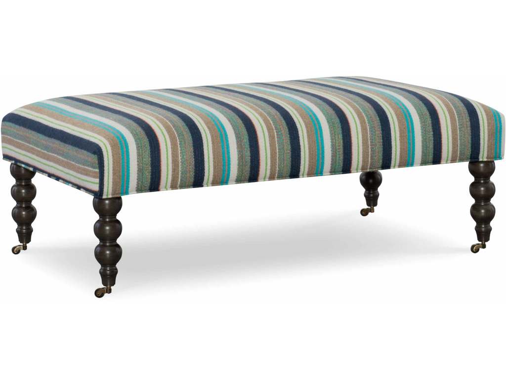 Product Description: CR Laine 34 Yates Ottoman - Standard with brass casters. Shown With: Retired Fabric and Java Finish.