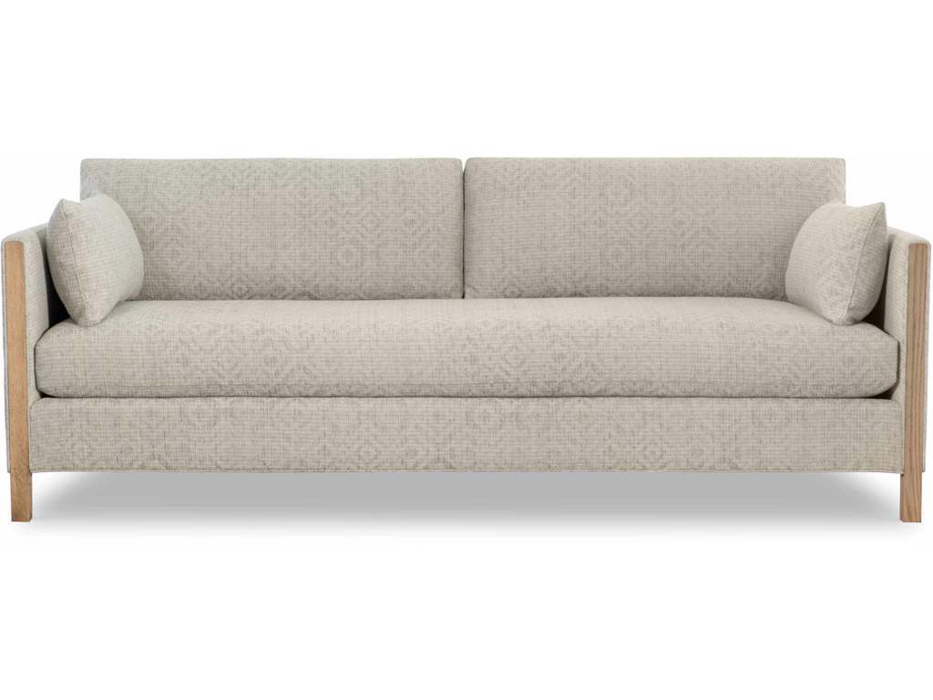Product Description: CR Laine 3500-20B Nelson Sofa - Box Border Back, Weltless, Oak wood legs. Wood grain pattern is a natural characteristic of oak. Marilyn Shadow Fabric and Aged Finish.
