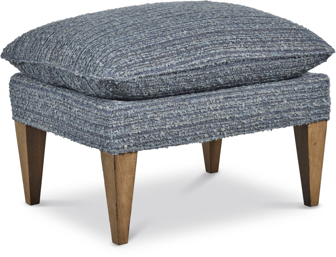 Product Description: CR Laine 8180-07 Colton Ottoman - Ottoman with a cushioned top and wooden legs. Upholstered in soft fabric for comfort and style. Provides a versatile accent piece for living rooms or bedrooms.