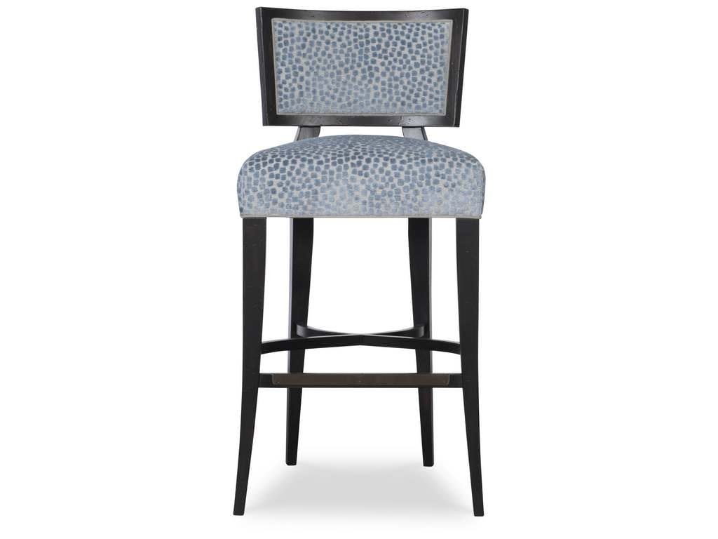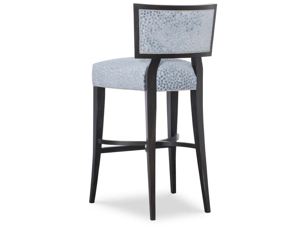Product Description: CR Laine 8220-46 Corinne Bar Stool - Shown in Fabric Bespeckled Blue, Contrast Welt in Hayden Pumice, Finish in Tavern Black
