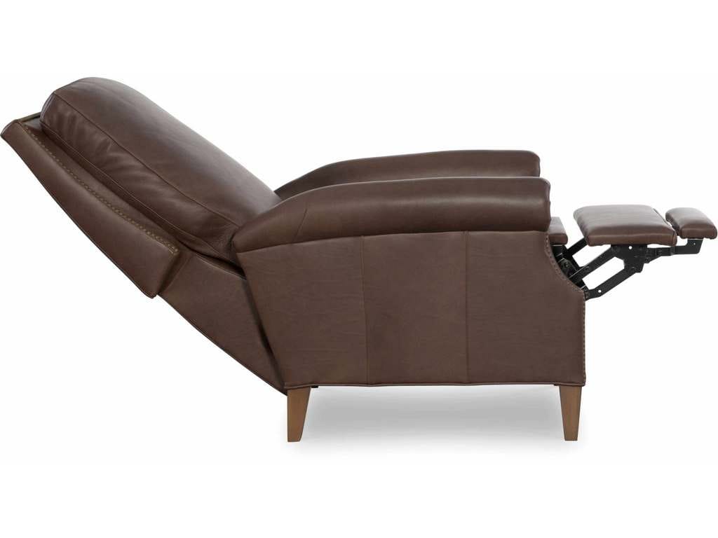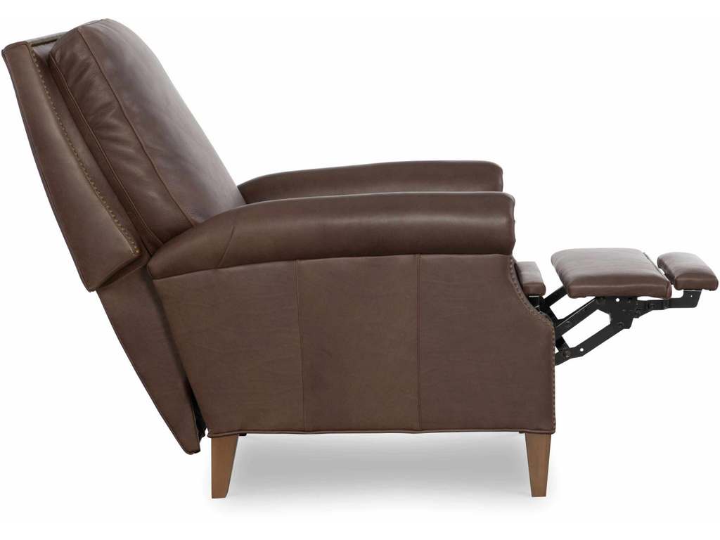 Product Description: CR Laine L1475-05MR David Leather Manual Recliner - Semi-Attached Box Border Back, French Seamed, Standard with small brass nail trim and Allow 18" distance from wall for full reclining position. Fully Reclined Depth: 66D. Shown with: Retired Leather, Teddy Bear Finish and Small Antique Nail Trim.