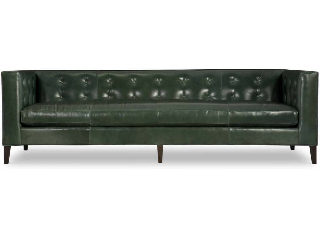Product Description: CR Laine L1550-01B Fletcher Leather Long Sofa - Tight back with Button Detail and Weltless. Maverick Cast Iron Leather and Fruitwood Finish.