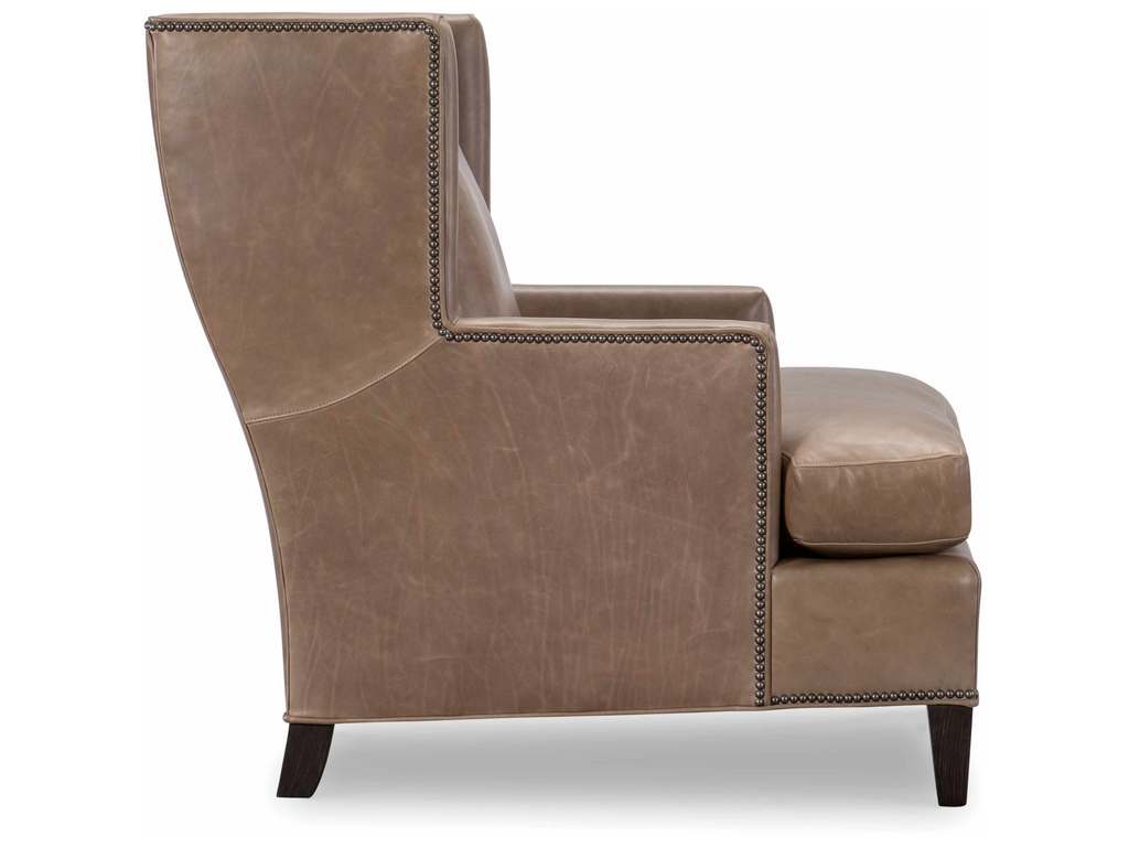 Product Description: CR Laine L2160-05 Penelope Leather Chair - Box Border Back. French Seamed. Standard with small brass nail trim. Shown with: Ranger Peat Leather, Sable Finish and Small Black Nickel Nail.