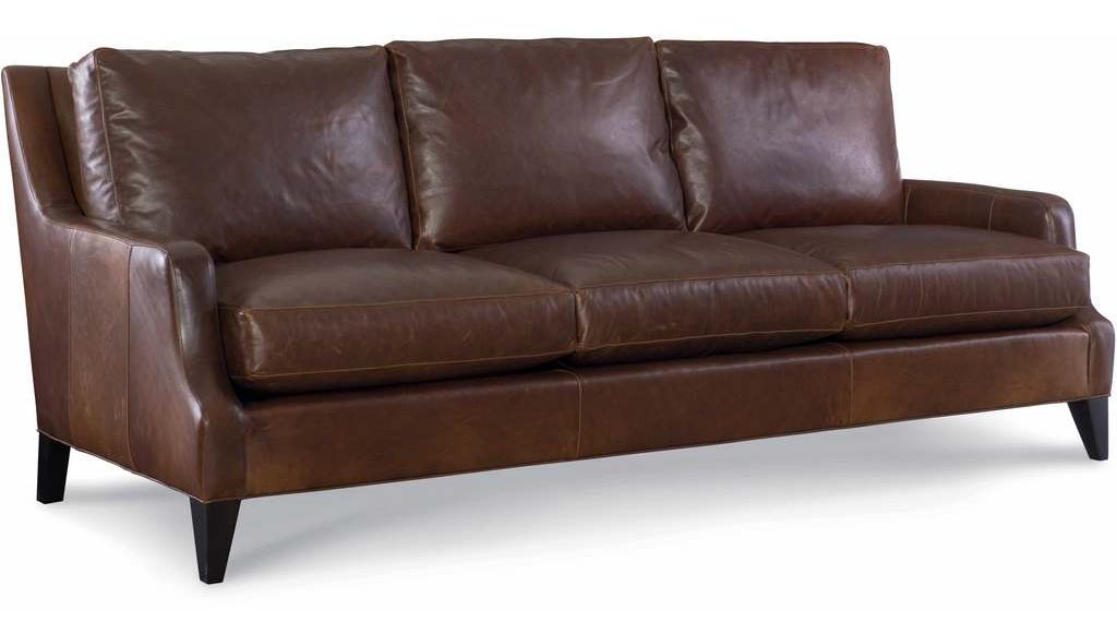 Product Description: CR Laine L3770-00 Austin Leather Sofa - Leather sofa upholstered in premium leather with plush cushions for comfort. Features a classic design with rolled arms and turned legs for a traditional touch. Ideal for adding a touch of elegance to a living room.