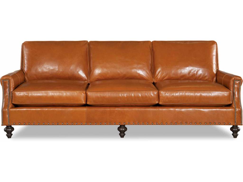 Product Description: CR Laine L5050-00 Sedgewick Leather Sofa - Box Border Back. Standard with small/medium brass nail trim. Polo Saddle Leather, Sable Finish, Small Black Nickel Nail Trim, Medium Black Nickel Nail Trim