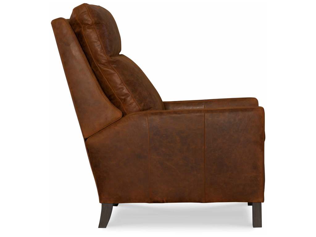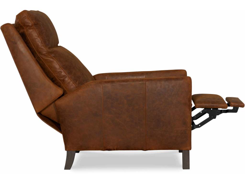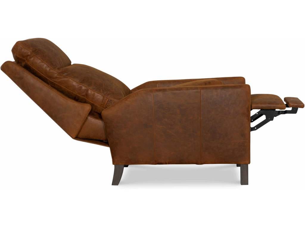 Product Description: CR Laine L5595-05MR Nathan Leather Manual Recliner - Semi-Attached Box Border Back, French Seamed, Allow 18" distance from wall for full reclining position. Fully Reclined Depth: 69D. Shown with: Buckingham Chestnut Leather and Sable Finish.