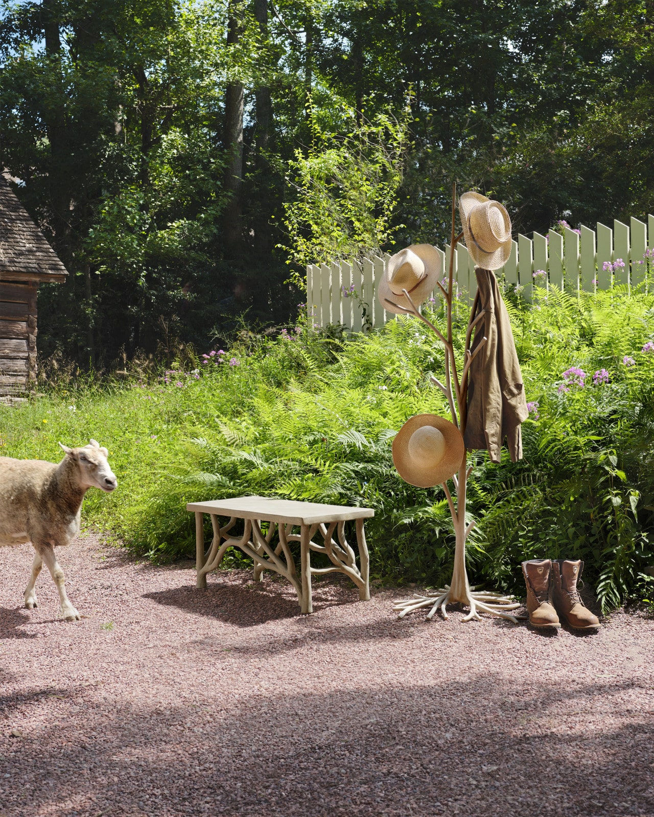 Product Description: Currey and Company 1101 Countryhouse Coat Rack - The Countryhouse Coat Rack is one of our faux bois accessories that illustrates how bringing concrete furniture indoors is a clever idea. When the gray coat rack in a natural faux bois finish isn't hung with coats, it's a lithe sculpture that will bring the feeling of nature indoors.