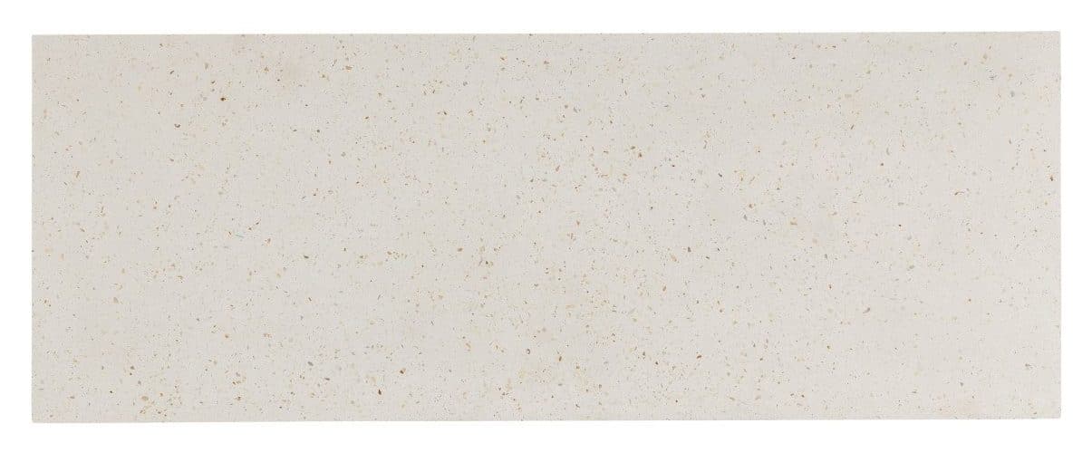 Product Description: Currey and Company 2000-0040 Carson Ivory Terrazzo Bench - The Carson Ivory Terrazzo Bench is made of concrete in an ivory terrazzo finish, the combination making it both sleek and durable for outdoor room, terraces and loggias. The ivory bench is created in pieces in a mold and then built so it is solid and sturdy. The concrete is mixed with tempered glass fibers that read as soft amber and metallic flecks embedded in the surface, adding a hint of glint to this sleek piece.