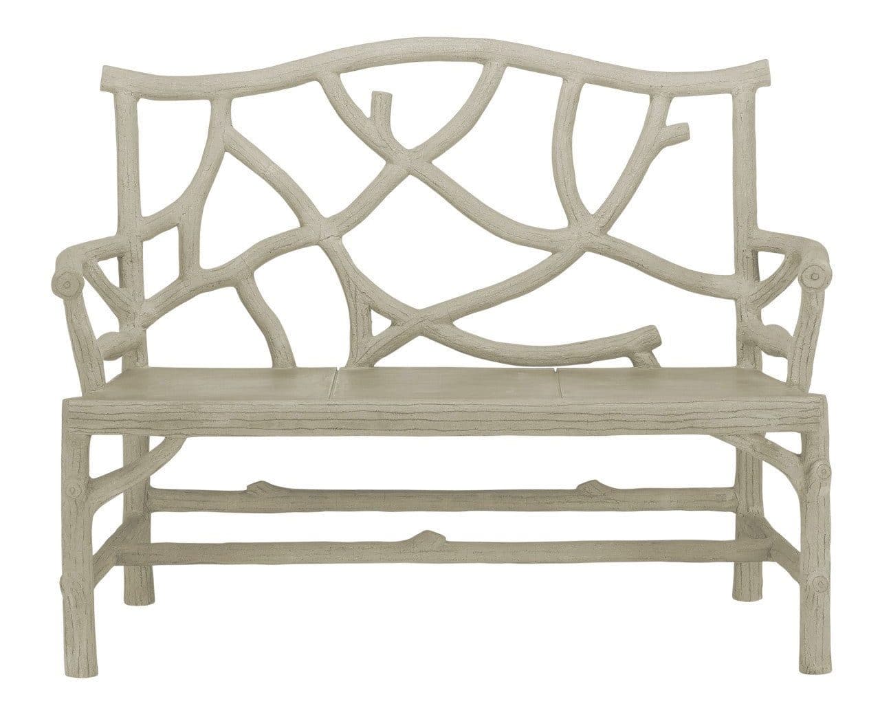 Product Description: Currey and Company 2705 Woodland Bench - The Woodland Bench is created by artisans who hand-apply the concrete over a metal frame and then sculpt it into the appearance of tree branches. The rustic yet transitional style of this faux bois bench allows it to move seamlessly from indoor settings to the outdoors.