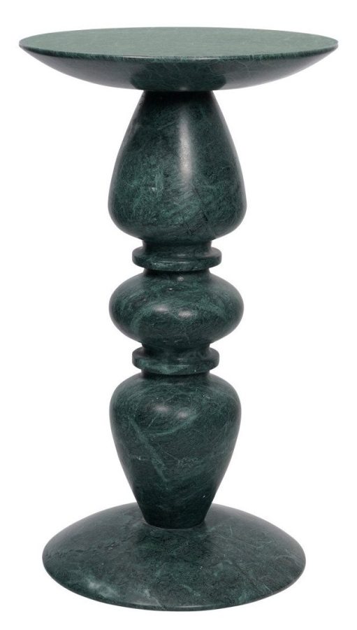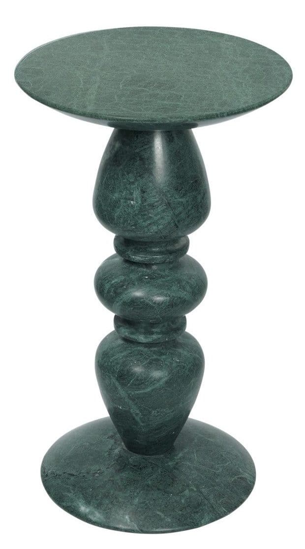 Product Description: Currey and Company 3000-0308 Nubia Green Accent Table - The Nubia Green Accent Table is like a beautiful chess piece with its turned column rising a round base that echoes the shape of the top. The steep bullnose on the underside of the top is also repeated, in reverse, on the base. Because this accent table is made of natural evergreen marble, the veining on each one will be unique. The top, base, and column are shipped together in three pieces.