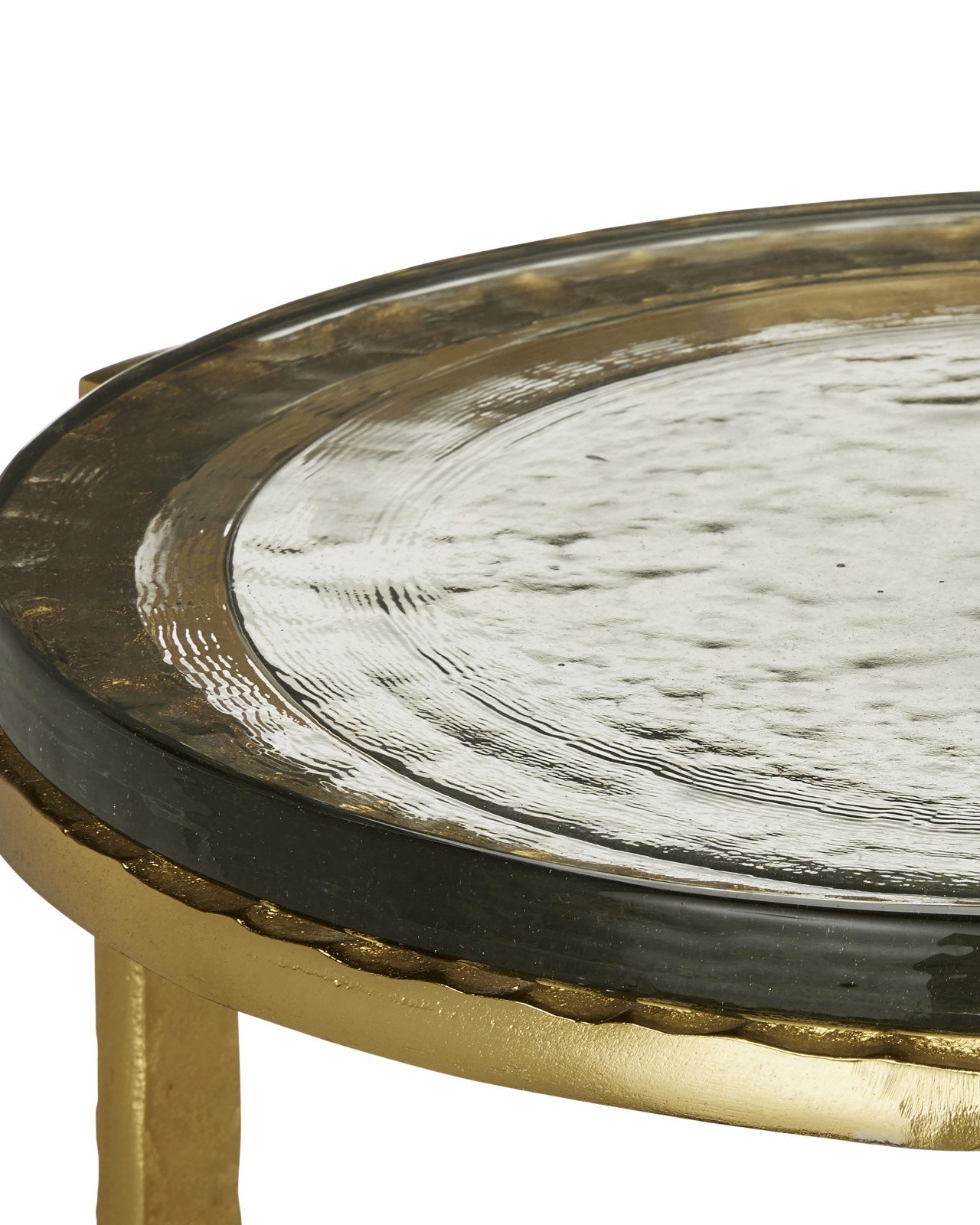 Product Description: Currey and Company 4000-0156 Acea Gold Accent Table - The point at which art and fine craftsmanship meet is where the Acea Gold Accent Table resides. Made of cast aluminum poured into a hammered mold to create even greater texture, the gold accent table is topped with a cast glass top that is equally textural and luminous. This table will be a piece of jewelry in a space.