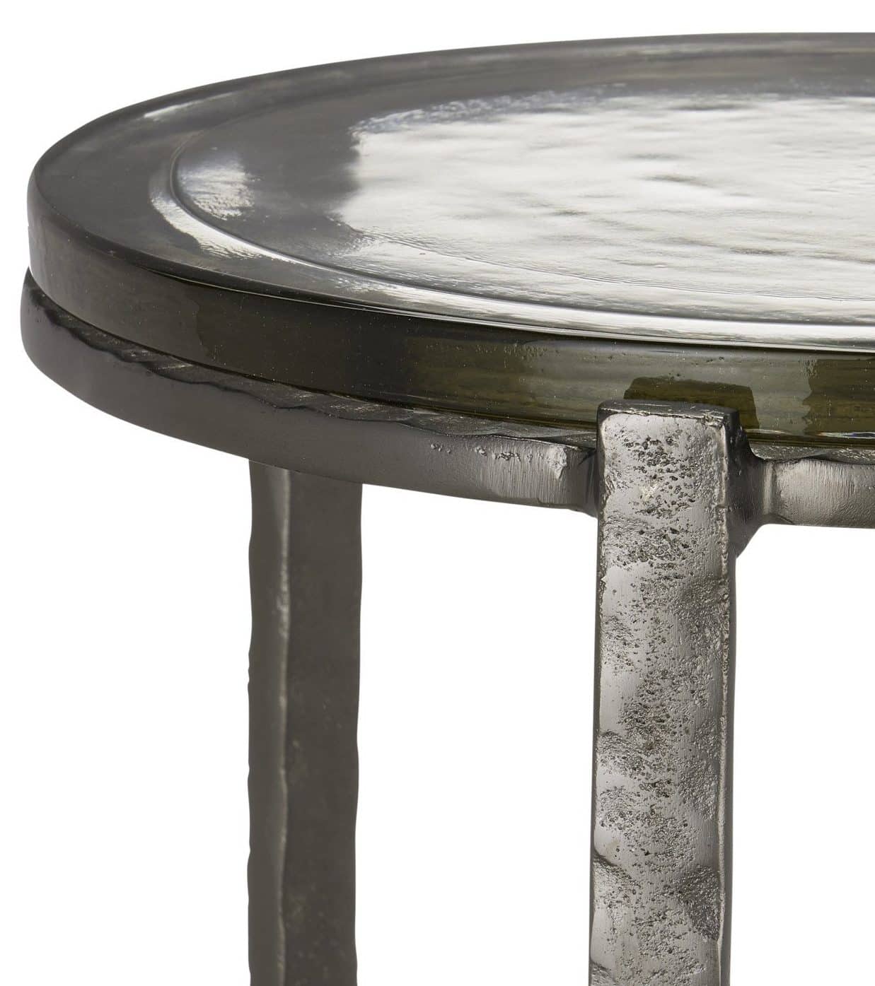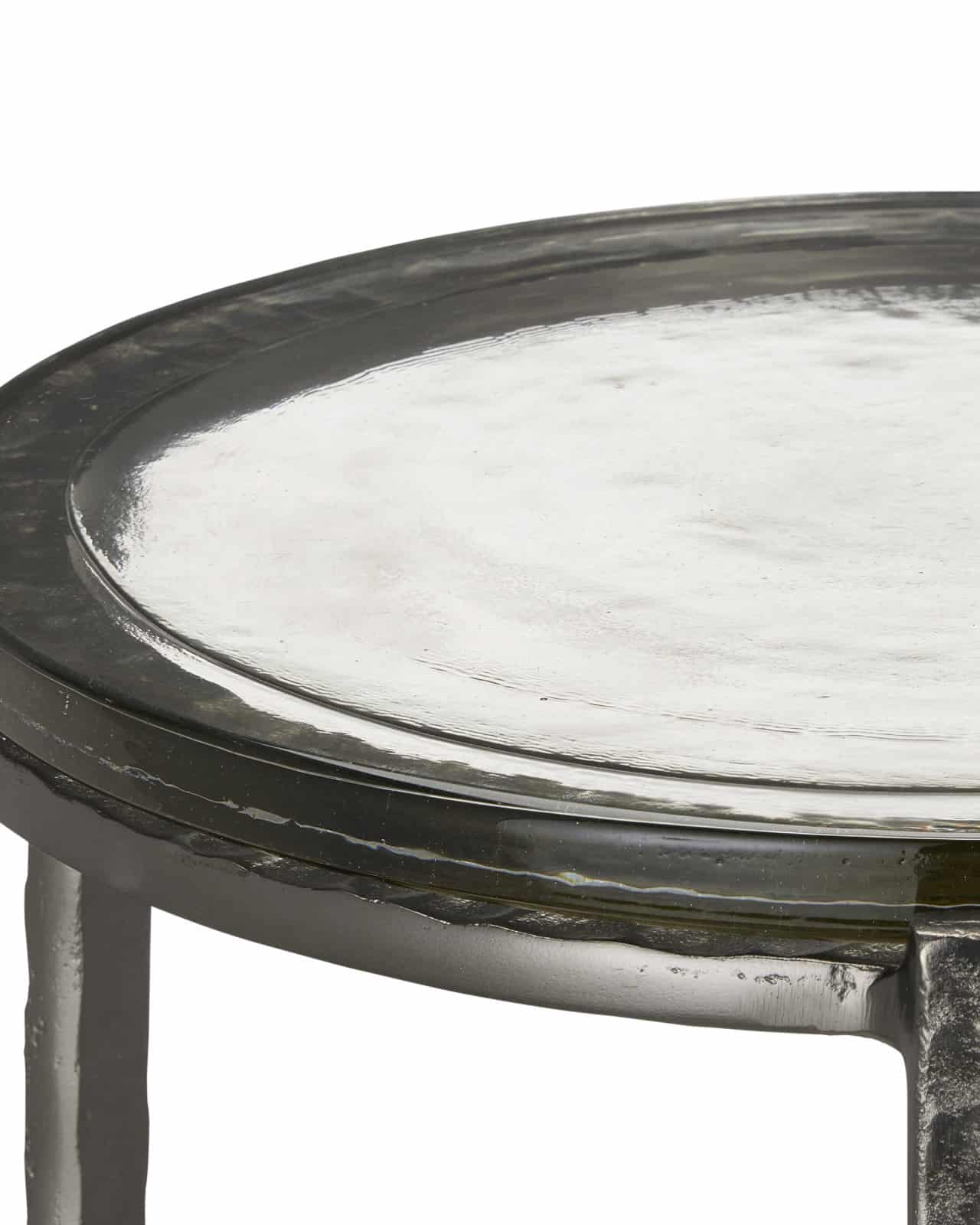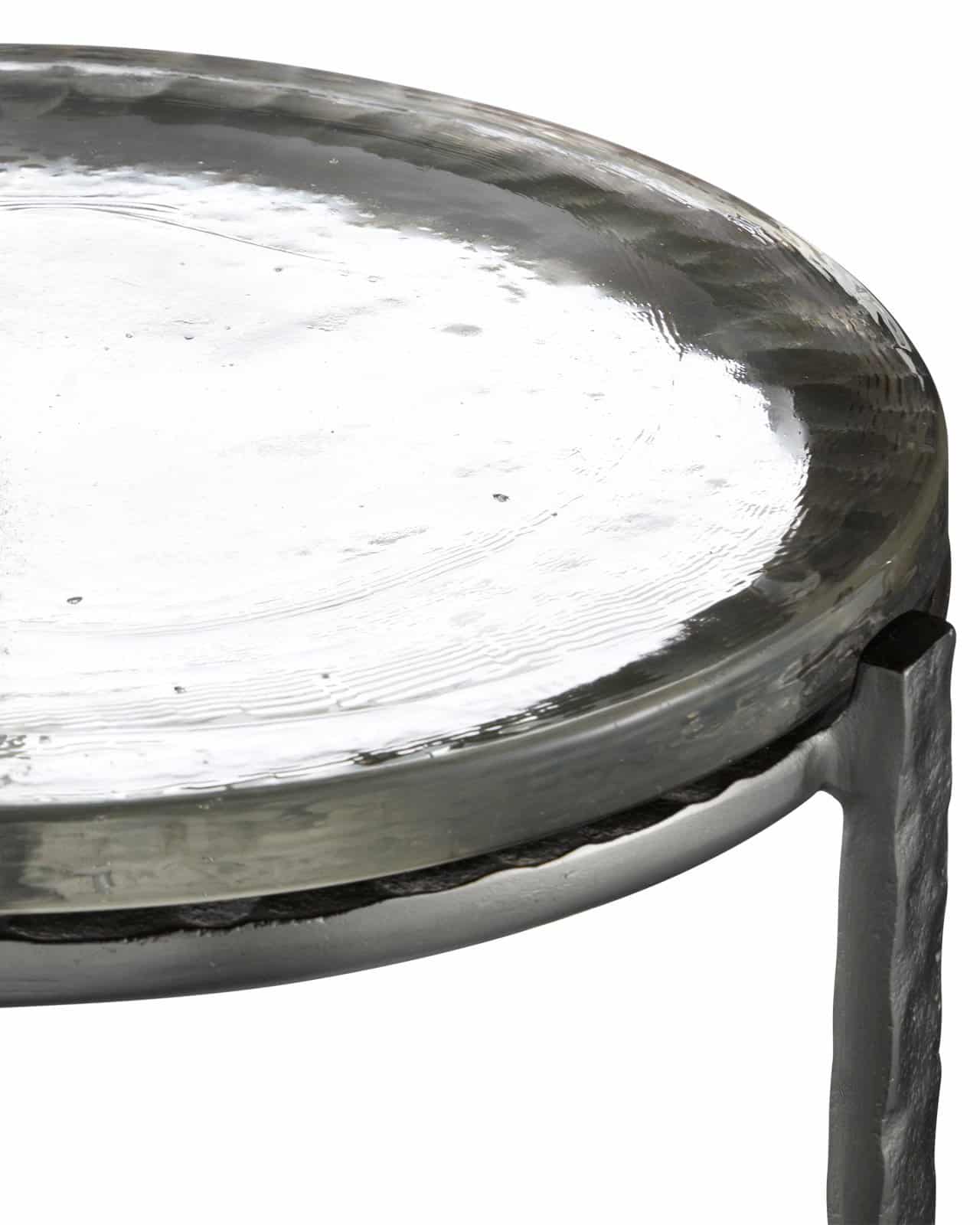 Product Description: Currey and Company 4000-0157 Acea Graphite Accent Table - The point at which artisanal and fine craftsmanship meet is where the Acea Graphite Accent Table resides. Made of cast aluminum that was poured into a hammered mold to create even greater texture than the metal would have exhibited without the added treatments, the silver accent table is topped with a cast glass top that is equally textural and luminous. This table will be a piece of jewelry in a space.