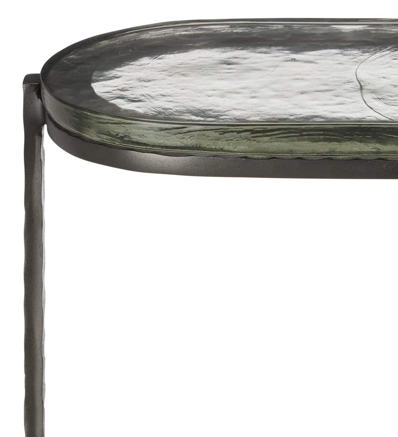 Product Description: Currey and Company 4000-0159 Acea Graphite Side Table - The point at which art and fine craftsmanship meet is where the Acea Graphite Side Table resides. Made of cast aluminum poured into a hammered mold to create even greater texture, the silver side table is topped with a cast glass top that is equally textural and luminous. This table will be a piece of jewelry in a space.