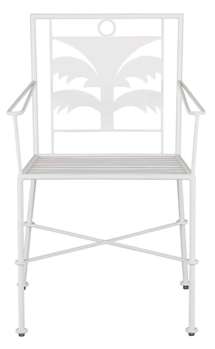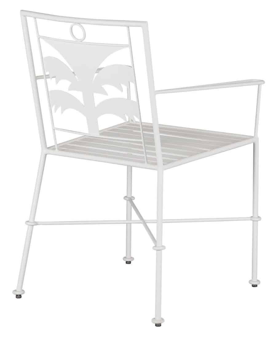 Product Description: Currey and Company 4000-0165 Las Palmas White Armchair - A kicky take on the palm motif, the Las Palmas White Armchair designed by Marjorie Skouras is every hostess's answer to a contemporary coastal chair that will serve as stylish seating in any number of spaces. Made of wrought iron, the white chair is one of Skouras' pieces that reflects her passion for the Yucatan. The surroundings in which she lives and through which she translates the flora and fauna into dynamic products in her studio, shine in this metal chair in a crisp gesso white finish.