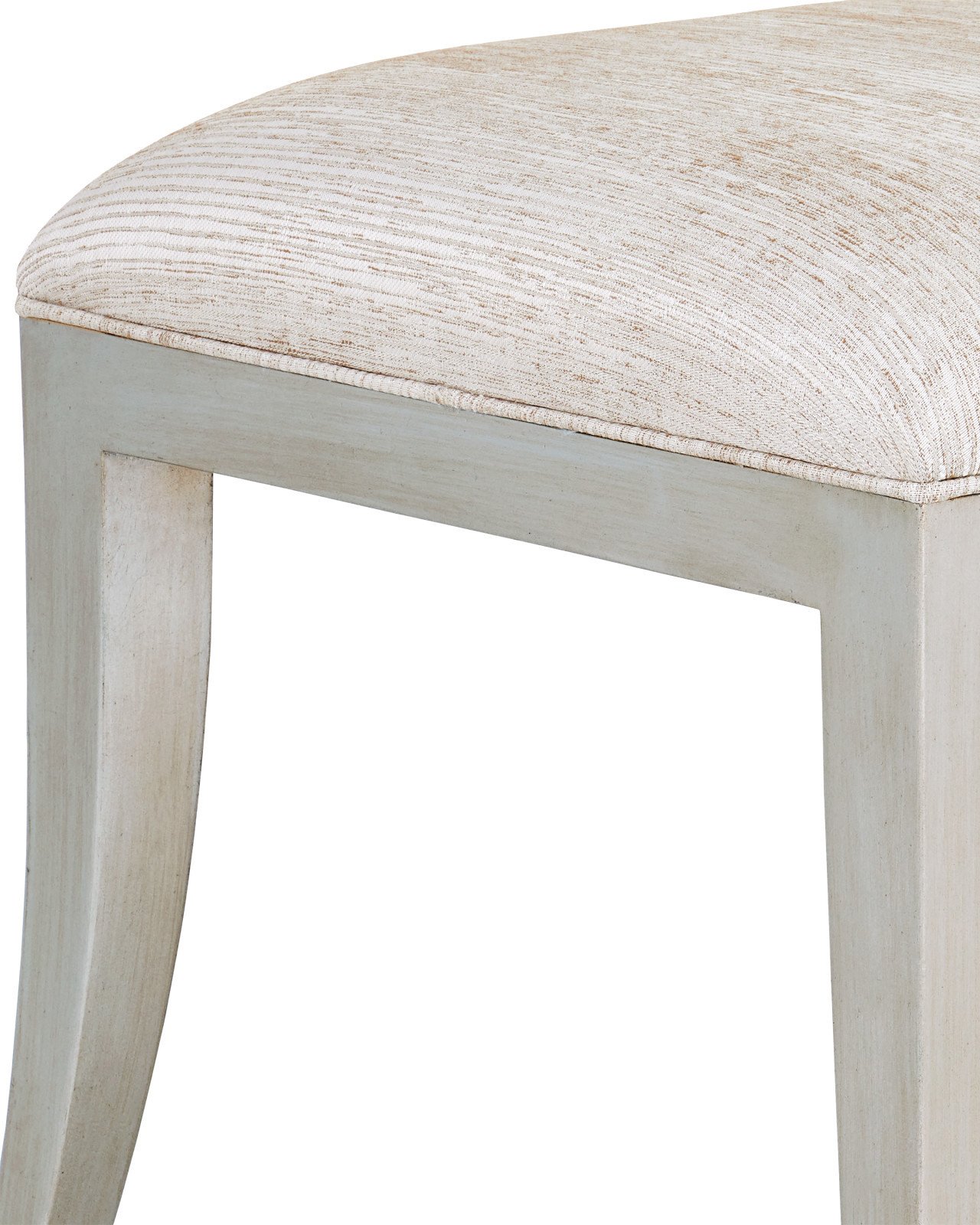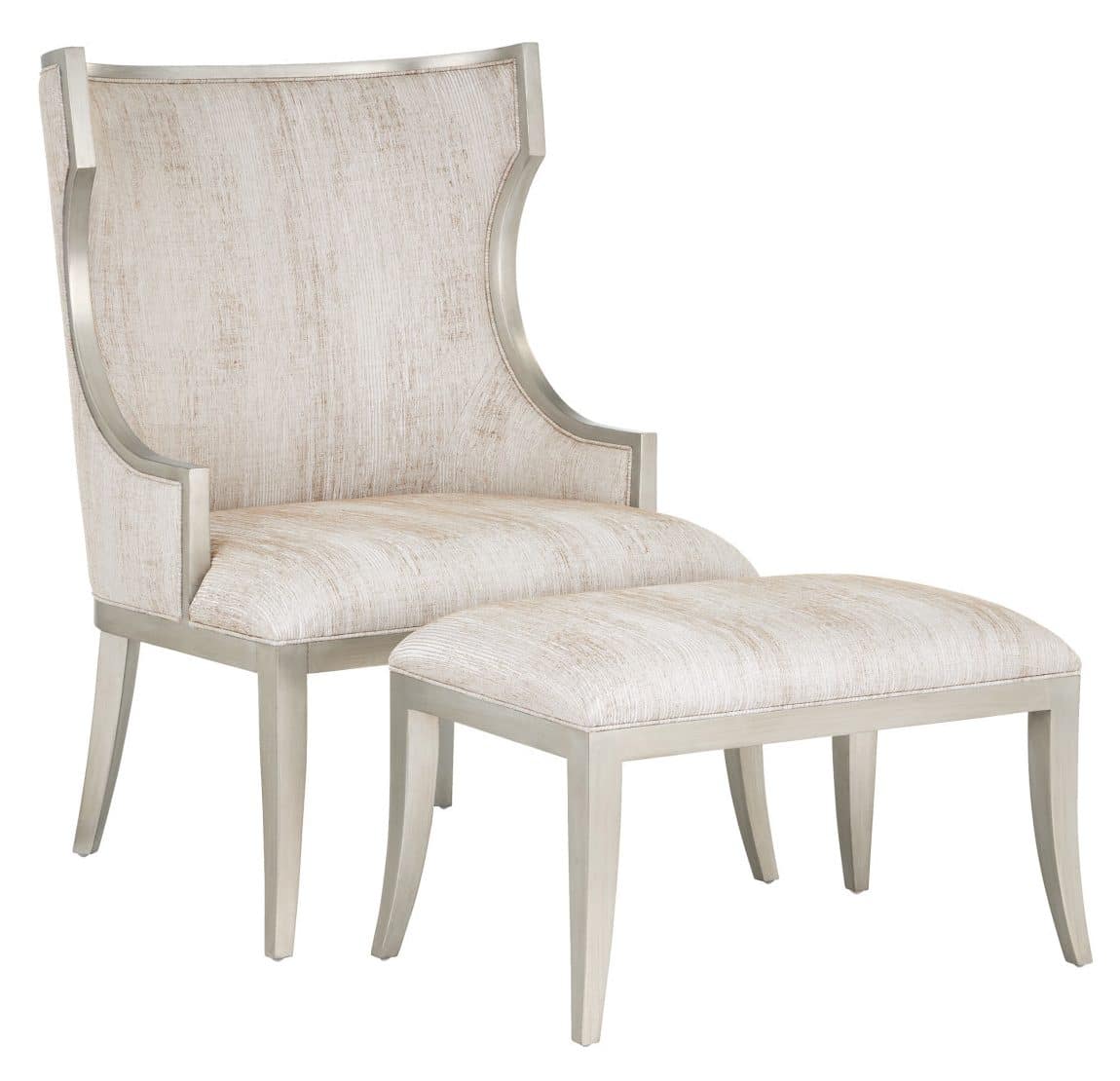 Product Description: Currey and Company 7000-0652 Garson Silver Ottoman Fresh Files Linen - Chic, comfortable, and timeless, the Garson Silver Ottoman is an updated take on the classic wingback design. The frame, made of mahogany with a silver finish, has a tailored feel as it meets the piping in the same fresh file linen as the upholstery fabric. The silvered material has a luminous sheen to it and is striated with gold to bring it a subtle texture. The pared-down lines of the ottoman's profile are fitting for many interior design styles.