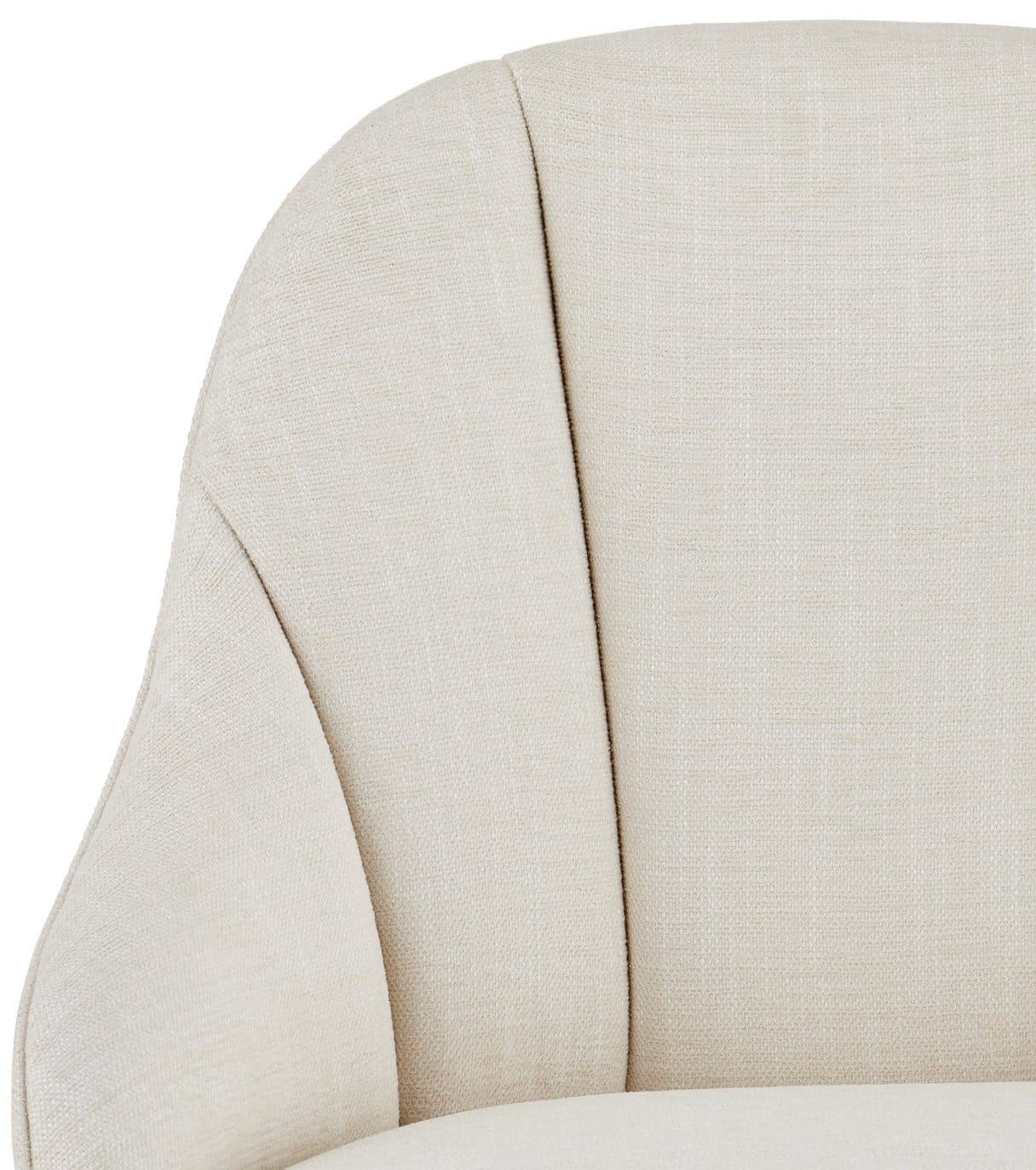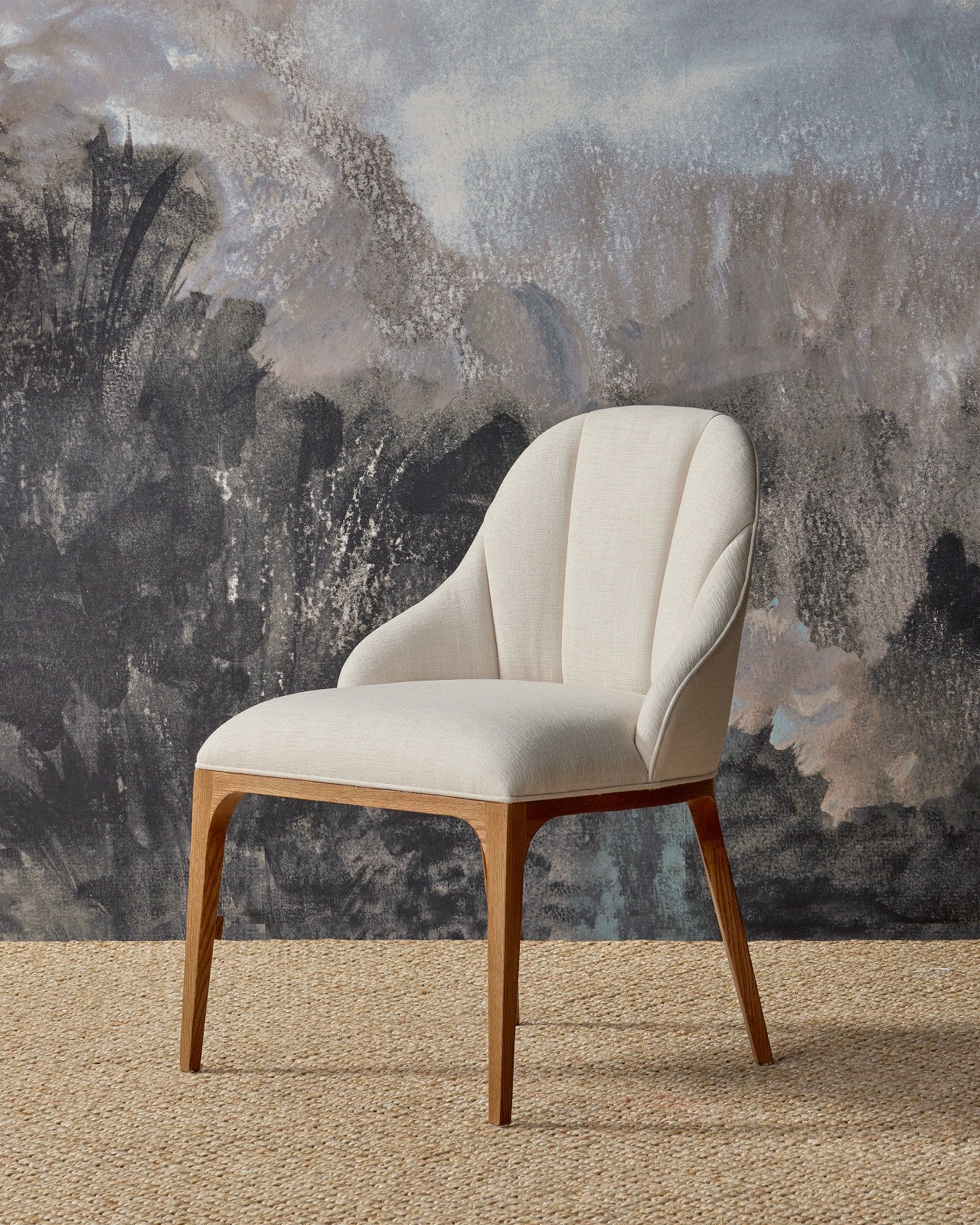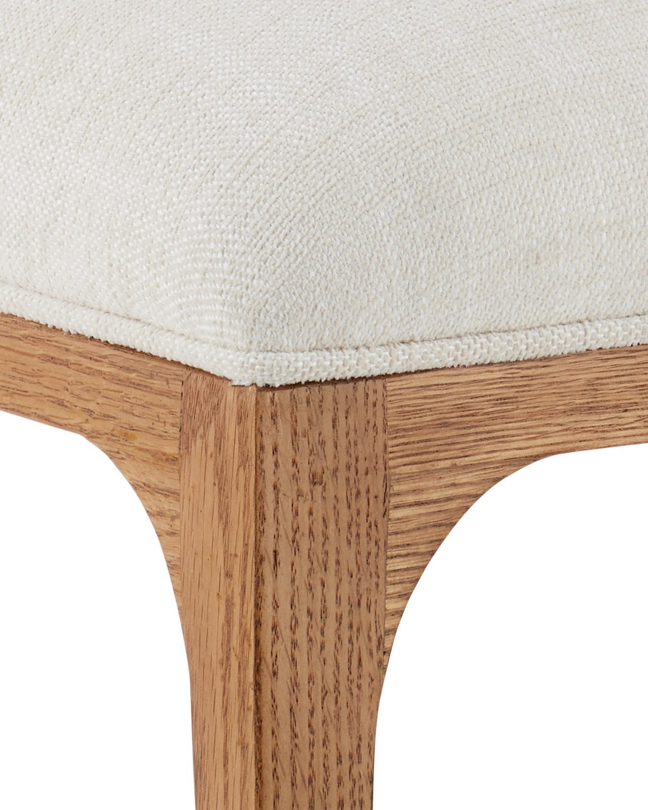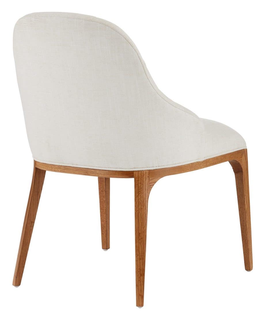 Product Description: Currey and Company 7000-0762 Inga Dining Chair Adena Parchment - The Inga Dining Chair, covered in Adena Parchment fabric, has an upholstered back and seat that sits nimbly atop a solid white-oak frame in a morel brown finish. The paleness of the fabric and the warmth of the wood are contrasting elements. The curved shape of the back and the tufted lines in the upholstered back are design details of note on this piece.