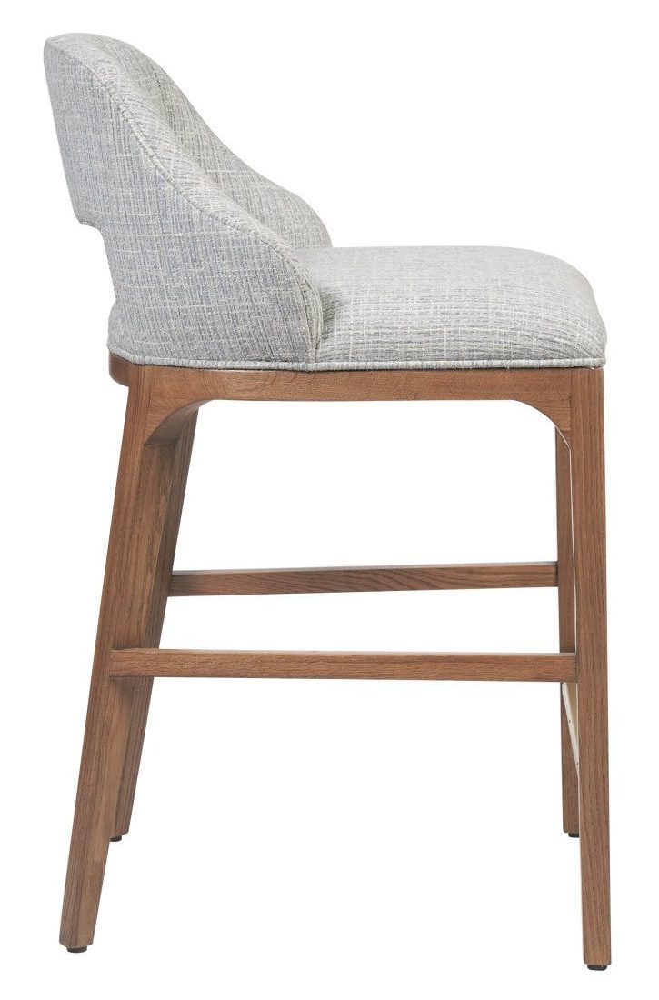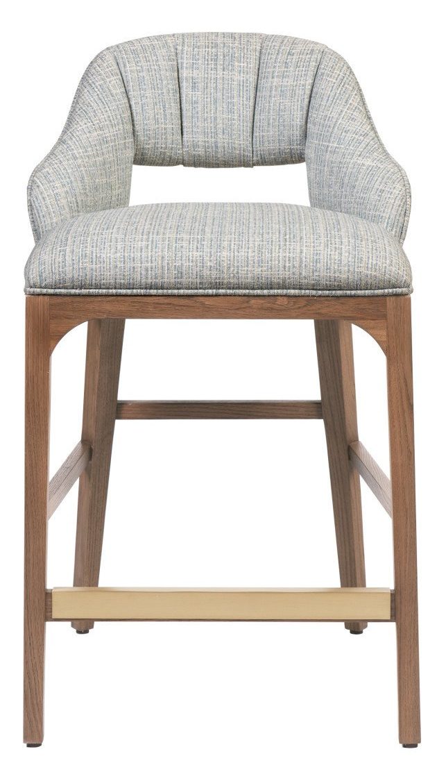 Product Description: Currey and Company 7000-0822 Inga Counter Stool, Greenlight Powder - The Inga Counter Stool covered in a Greenlight Powder fabric has an upholstered back and seat that sits nimbly atop a solid oak frame in a morel brown finish. The paleness of the fabric and the warmth of the wood create a soft contrast, while the brass kick-plate brings a bit of brightness to the design.
