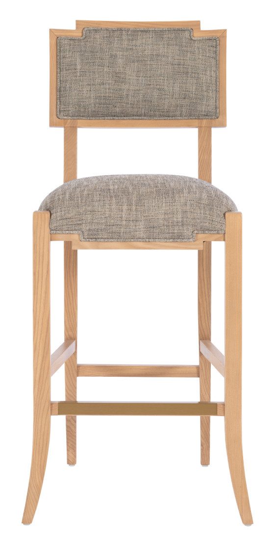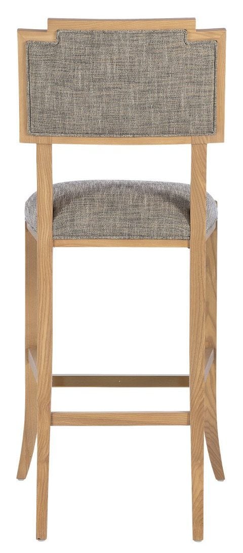 Product Description: Currey and Company 7000-1012 Melanie Blonde Bar Stool Liller Tortoise - The Melanie Blonde Bar Stool is made of ash wood in a blonde ash-wood finish; the slanting legs and the stepped details where the upholstery meets the wood on the seat are reminiscent of Greek stylistic leanings that give this piece added personality. The seat, and the front and back of the seatback are covered in a Liller Tortoise performance fabric that has a textural feel.