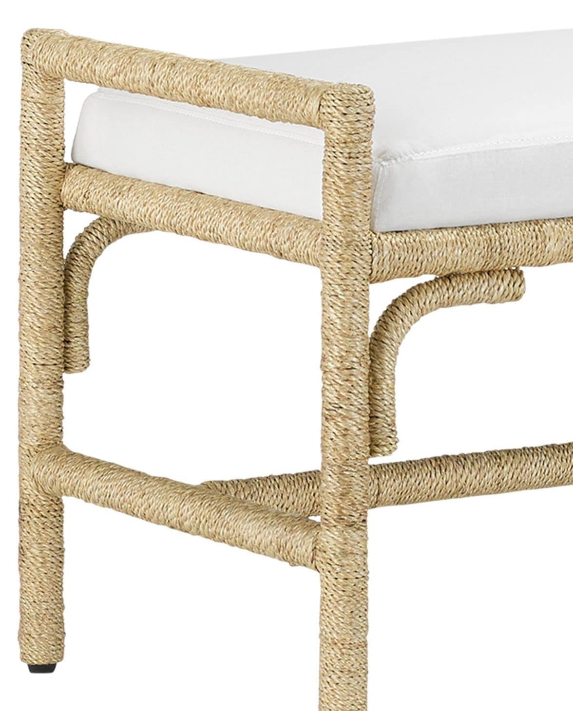 Product Description: Currey and Company 7000-1171 Olisa Natural Bench Muslin - With the earthy feel of rattan and wicker but with a much heavier dose of personality, the Olisa Natural Bench is a wrap star! Made of wrought iron that is covered in braided Abaca rope.