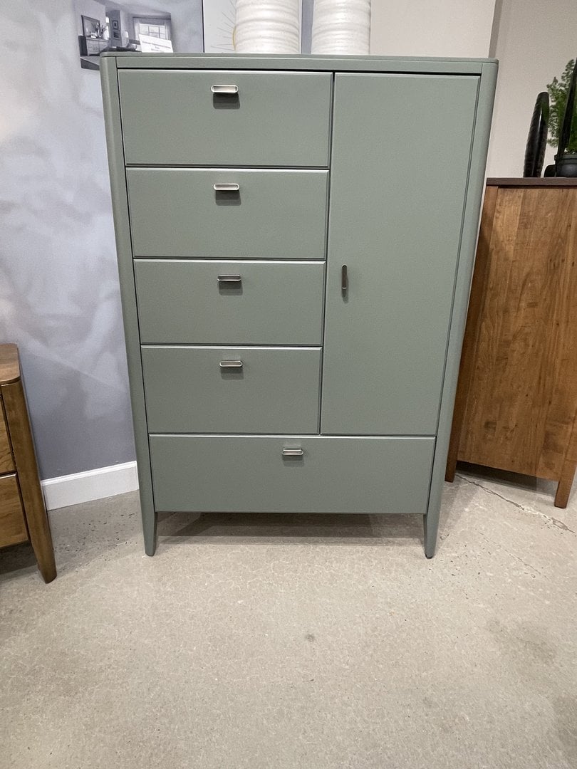 Product Description: Durham Furniture 257-162 Caledon Gentlemen's Chest - The Caledon Gentlemen's Chest is a distinguished tall bedroom storage piece, crafted to blend timeless style with practical function. Made from solid clean cherry wood with premium soft-close drawers, this gentleman’s chest offers generous storage with five smooth-gliding drawers and a side compartment with clothing rod and adjustable shelves — perfect for organizing clothing and accessories. With a refined silhouette and customizable finish options in all cherry or designer colors, it adds elegant warmth and enduring quality to any bedroom setting.
