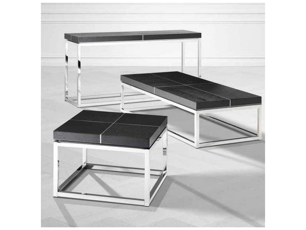 Product Description: Eichholtz 104556 Console Table Magnum - With its sleek polished stainless steel base and robust panelled black oak veneer tabletop, the Magnum Console Table adds genuine designer appeal to your living space.