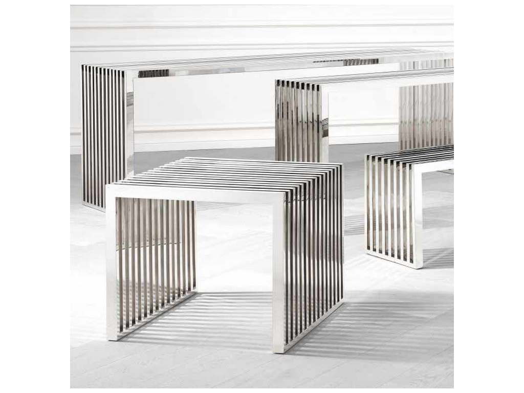 Product Description: Eichholtz 105340 Side Table Carlisle - Characterised by an architectural design and a slanted line pattern, the sleek and shiny Carlisle Side Table is a fine addition to modern and contemporary decors. It is crafted from stainless steel and features a polished finish.