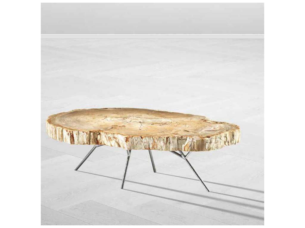 Product Description: Eichholtz 109033 Coffee Table Barrymore - Bring the beauty of nature into your home with the Barrymore Coffee Table. A slim polished stainless steel structure holds up a thick slice of petrified wood that owes its unique character to its distinct grains, knots and holes.