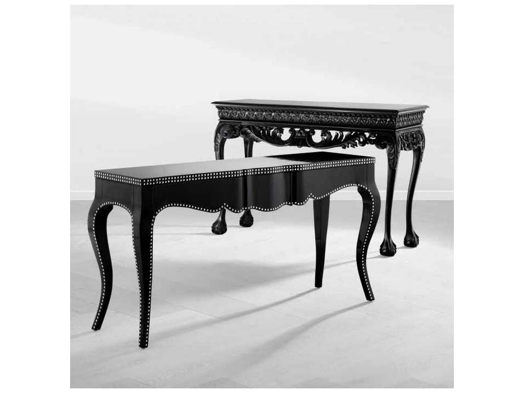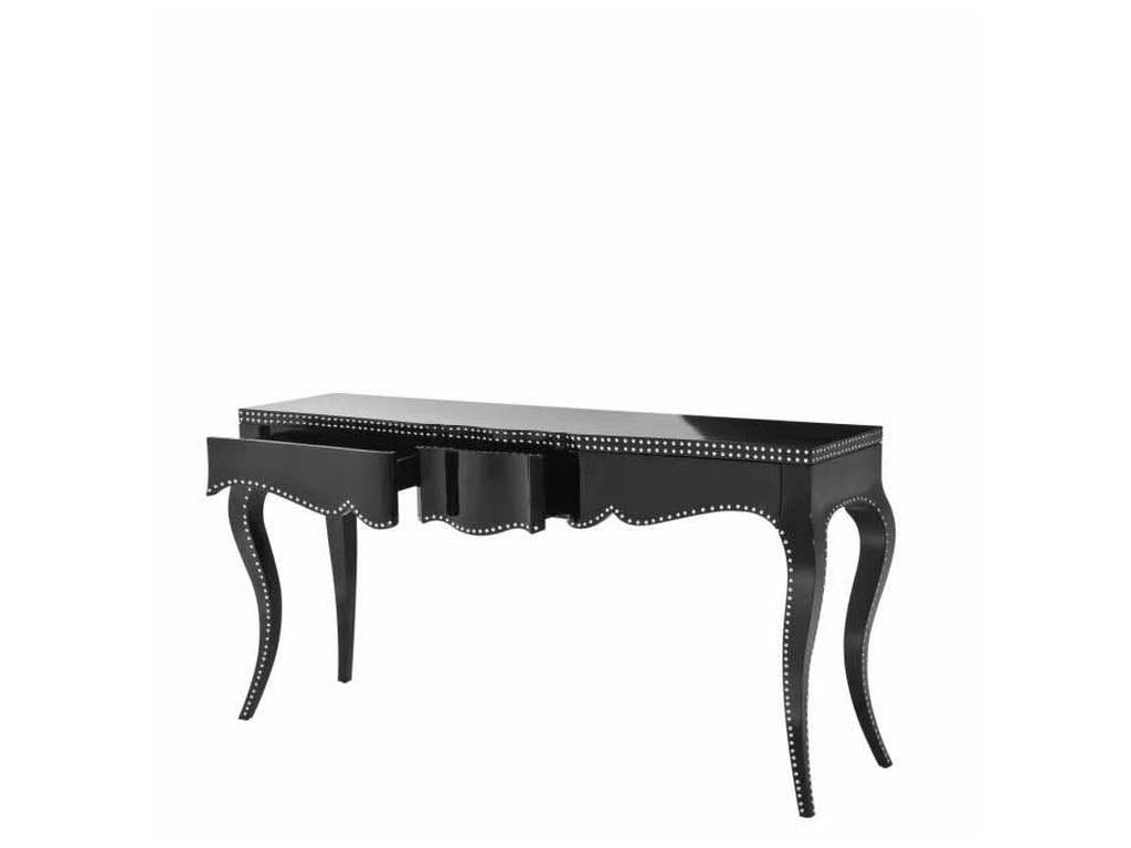 Product Description: Eichholtz 109429 Console Table Margaret - Enhance the beauty of your home decor with Console Table Margaret. With its piano black finish, elegant curves, and nickel studs, this baroque furniture piece will be a glamorous eye-catcher in your lounge, hallway or bedroom.