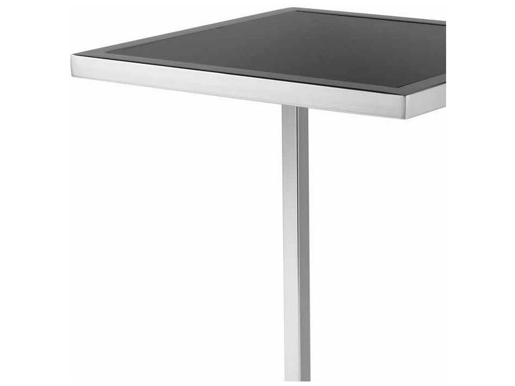 Product Description: Eichholtz 109685 Side Table Galleria - Comprising a clean-lined frame with nickel finish and black glass tabletop, the Galleria Side Table will elevate the style of your interior.