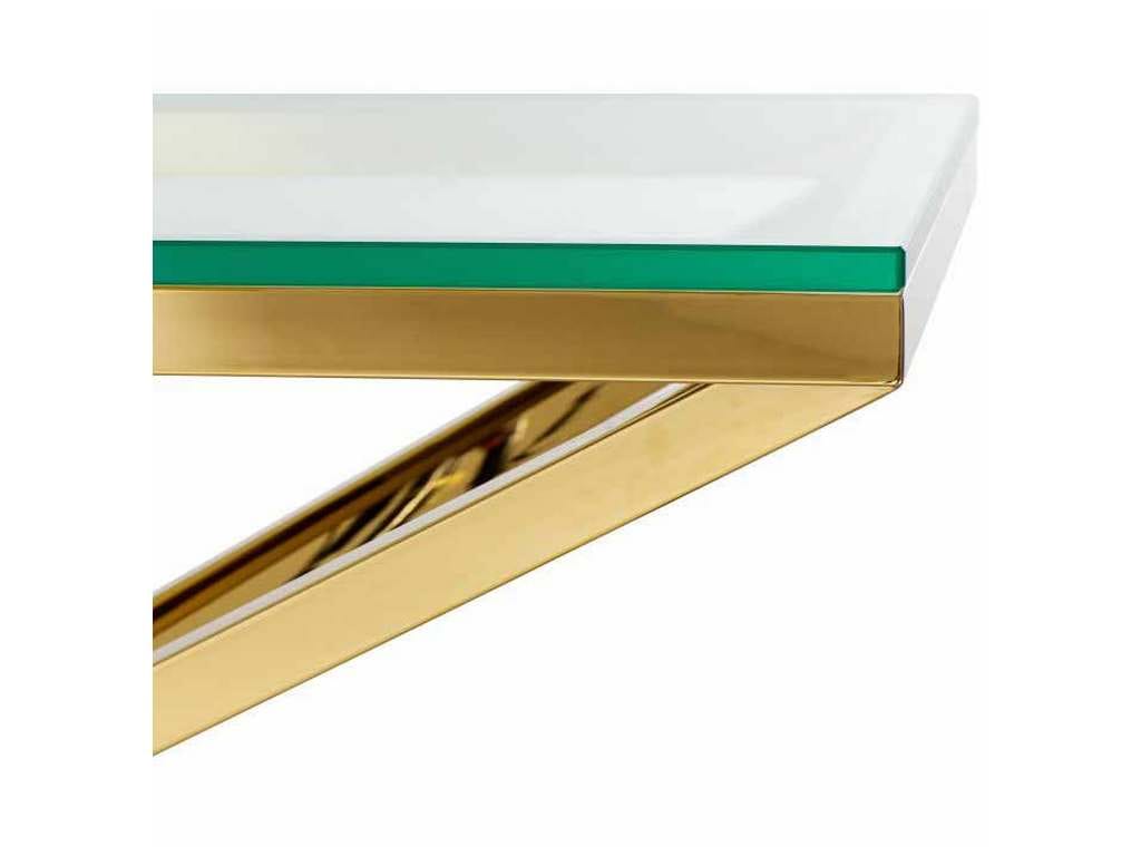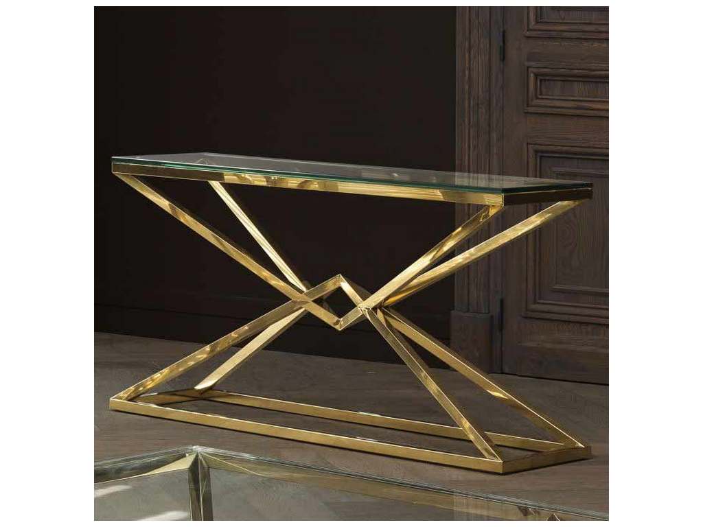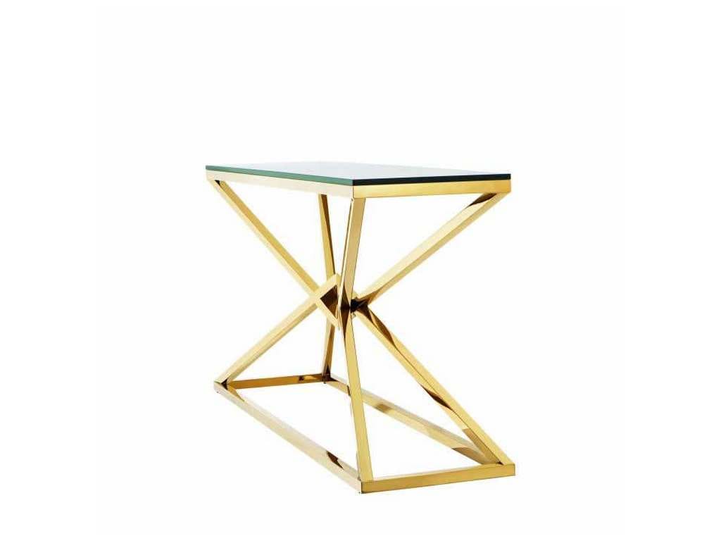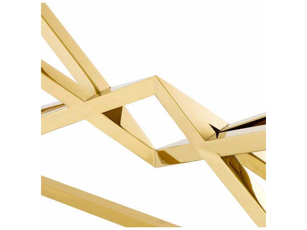 Product Description: Eichholtz 109874 Console Table Connor L - Discover the versatility of the Connor Console Table. With its shiny pyramid base, this designer table adds radiance and splendour to your home decor. Crafted from stainless steel, the conspicuous geometric base features a glamorous gold finish and a clear glass tabletop.