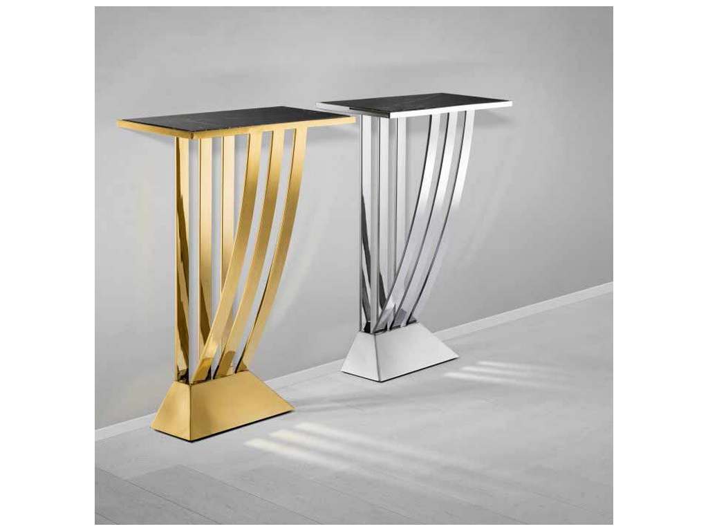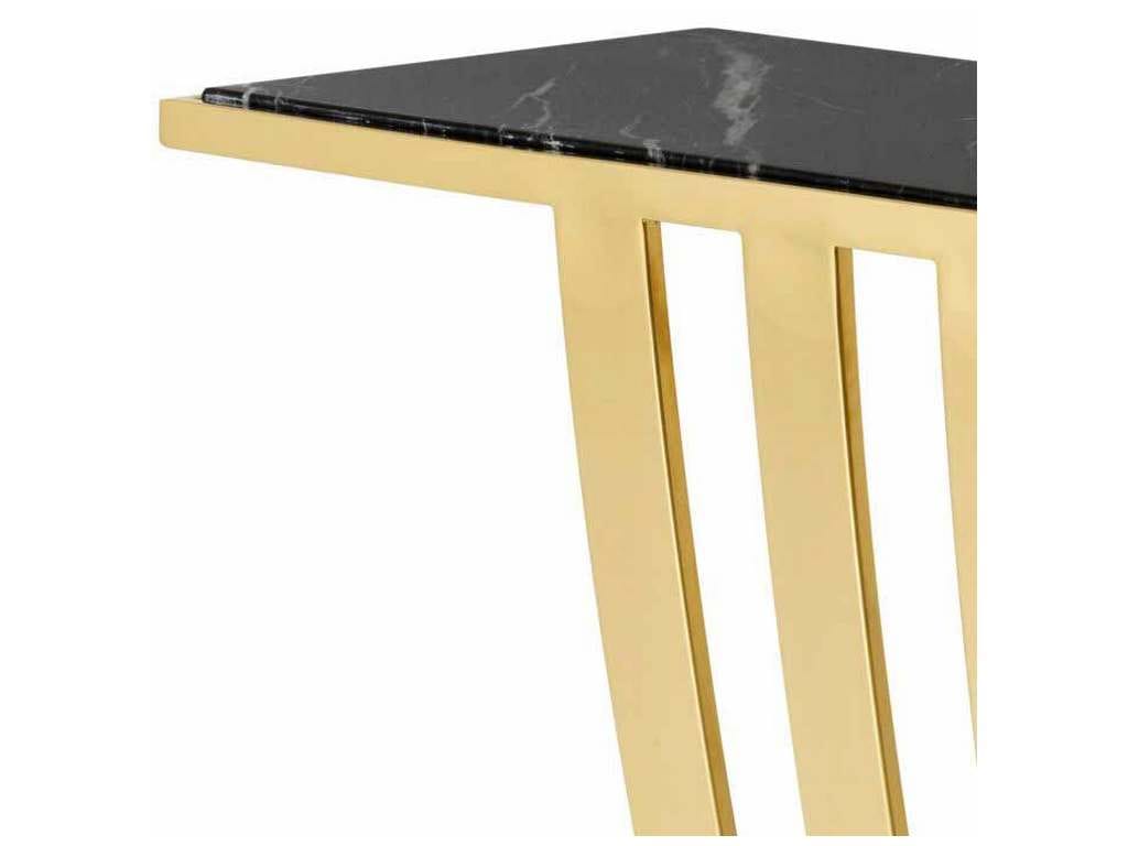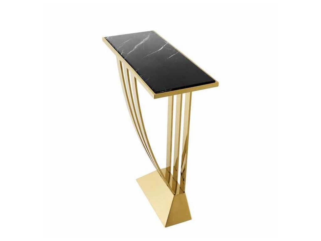 Product Description: Eichholtz 110005 Console Table Beau Deco - Create a monochromatic effect in your interior with the Beau Deco Console Table. It comprises a unique gold finished frame with a large, sturdy base and protruding slats on either side. The rectangular tabletop has a black marble surface.