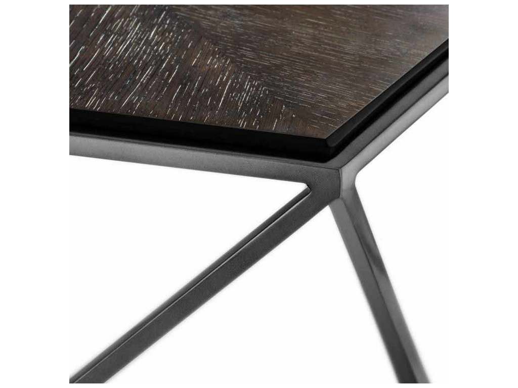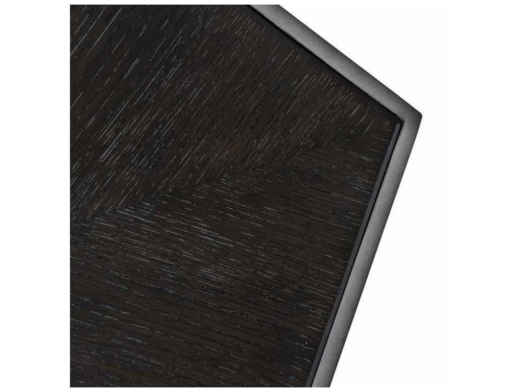 Product Description: Eichholtz 110614 Coffee Table Pentagon - Grant your living area a voguish vintage feel with the Pentagonal Coffee Table. Its tapered triangular frame features a matte black nickel finish, while its charcoal oak veneer tabletop is beautifully inlaid in a three-cornered pattern.