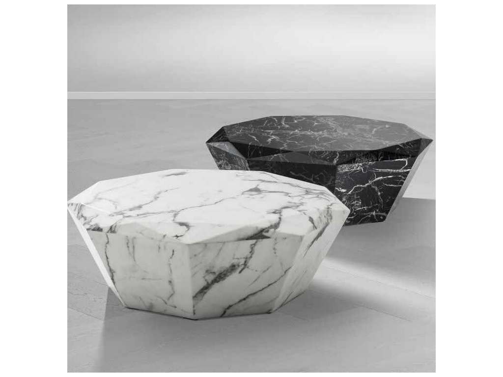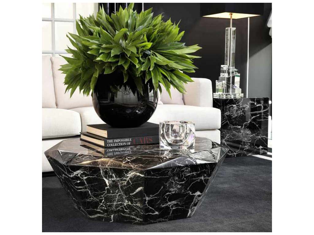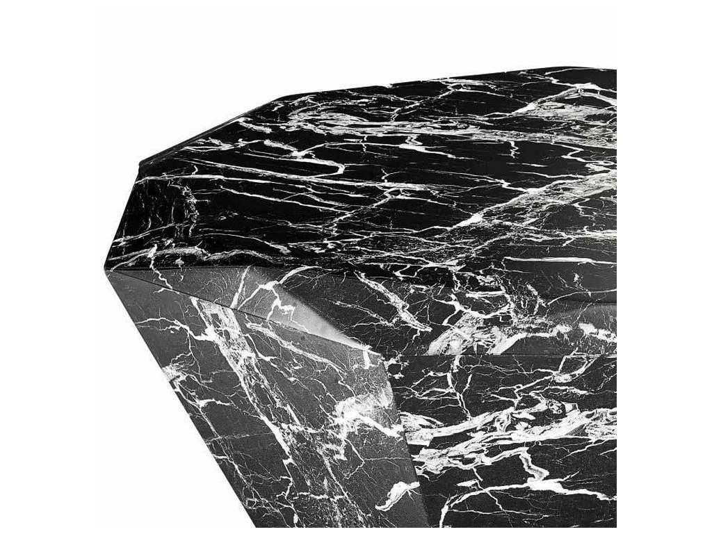 Product Description: Eichholtz 110662 Coffee Table Diamond - The remarkable Diamond Coffee Table resembles the outlines of a faceted diamond. It is made of black faux marble and features characteristic white swirls and veins.