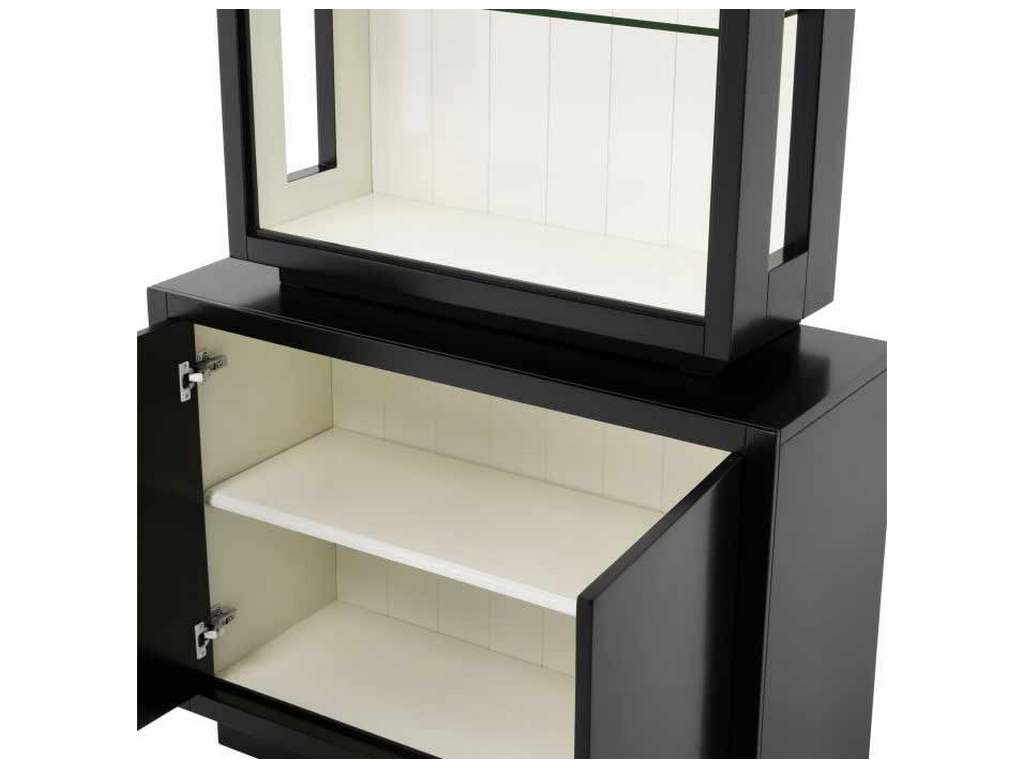 Product Description: Eichholtz 111109 Cabinet Avenue Montaigne - The understated and chic Avenue Montaigne Cabinet brings contemporary style to your living space. Featuring 3 spacious clear glass shelves, the bookcase with white interior provides ample space to arrange any display. The cabinet underneath features two doors with nickel hardware.