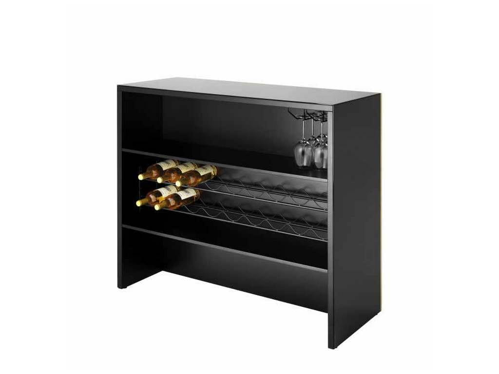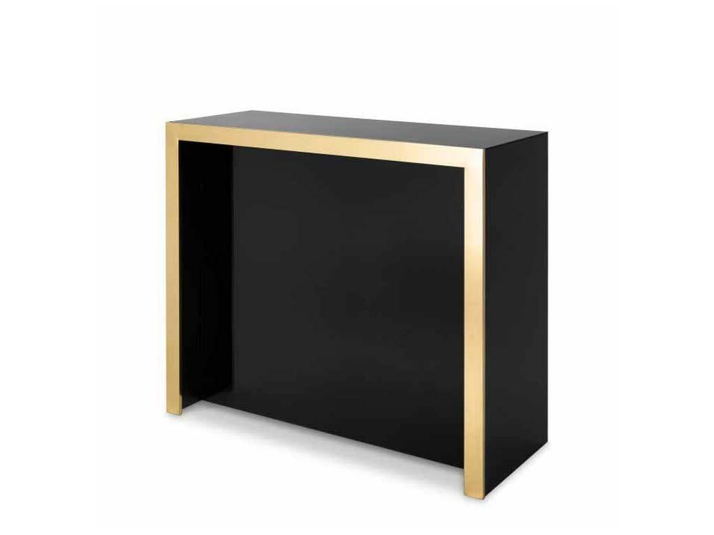 Product Description: Eichholtz 111437 Bar Grimaldi - In hospitality it's all about creating an outstanding ambience for your guests. Impress your guests with the ultra-stylish Grimaldi Bar. Featuring a black glass exterior with a gold finished frame, this contemporary home bar offers 2 large shelves and a wine rack for 20 bottles.