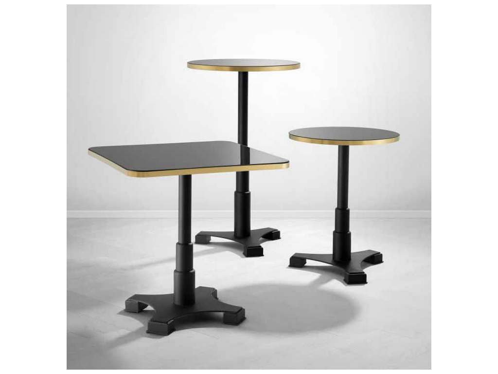 Product Description: Eichholtz 111852 Dining Table Avoria Square - Choose the Avoria Square Dining Table for a contemporary take on the traditional bistro table. Featuring a sleek black base and a shiny black tabletop with brushed brass rim, this stylish dining table is a wonderful addition to your breakfast nook, eat-in kitchen or dining room. Ideal for smaller rooms where space is limited.