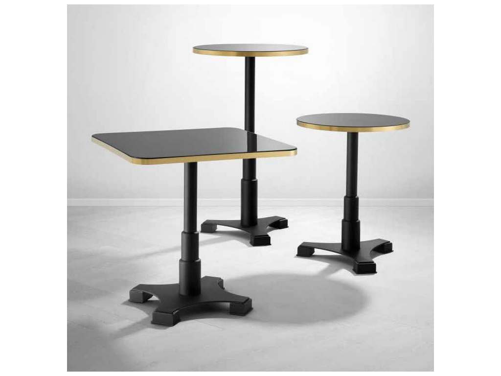 Product Description: Eichholtz 111853 Dining Table Avoria Round - Choose the Avoria Round Dining Table for a contemporary take on the traditional bistro table. Featuring a sleek black base and a shiny black tabletop with brushed brass rim, this stylish dining table is a wonderful addition to your breakfast nook, eat-in kitchen or dining room. Ideal for smaller rooms where space is limited.