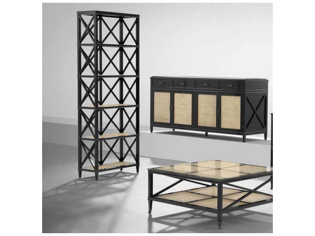 Product Description: Eichholtz 111891 Cabinet Bahamas - Featuring five spacious shelves, the enchanting Bahamas Cabinet is a wonderful addition to your home interior. It is comprised of mahogany wood, natural mesh cane webbing and clear glass and has a black finish and cross bars for added design.