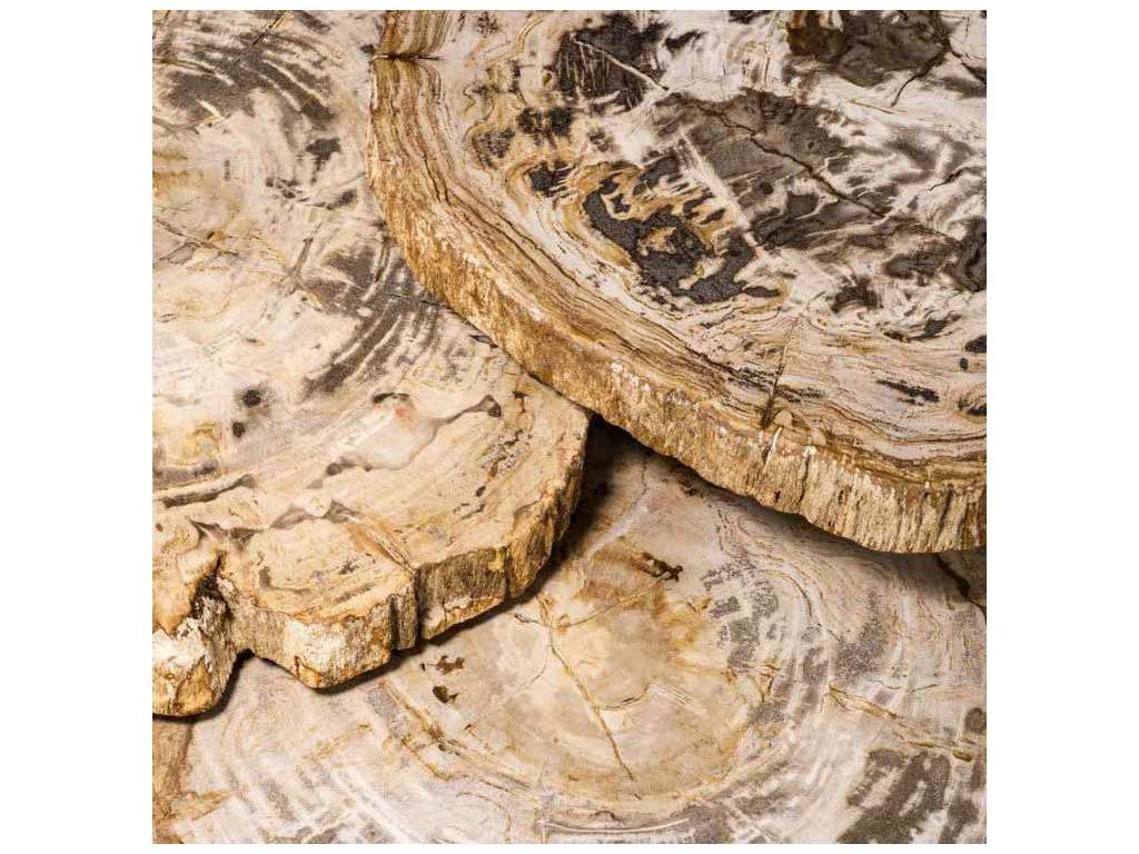 Product Description: Eichholtz 111999 Coffee Table De Soto Set of 3 - Grains, knots and holes grant a unique appearance to the Coffee Table De Soto set of 3 with petrified wood table tops. Characterised by natural brown, grey and white tones, these distinctive coffee tables are suitable for a variety of interior styles and colour schemes. The tables vary in height and feature bronze finish legs. Petrified wood literally means: wood turned into stone. Trees that have been buried under sediment for many years can transform into stone. While retaining the original structure of the stem tissue, all the organic materials are replaced with minerals.